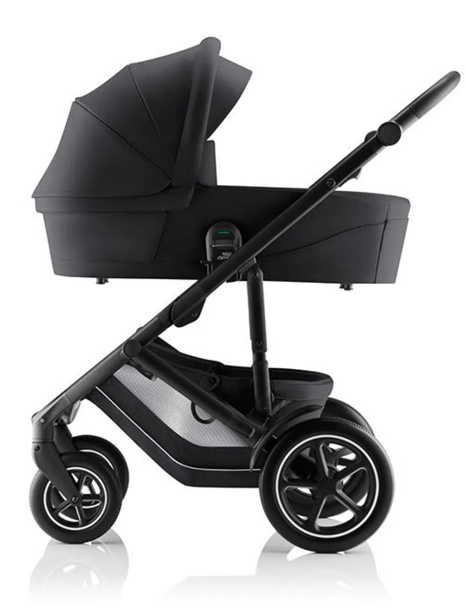 Den rummelige babylift med flad liggeflade beskytter din baby gennem alle årstider, indtil barnet vejer 9 kg. eller begynder at vende sig. Et forlæder, der kan lynes beskytter din baby, når vejret er koldt og gør det nemt at tage barnet op eller lægge det ned, og et peek-a-boo vindue med ventilation. Hukommelsesknapper gør det enkelt at frakoble babyliften fra stellet uden at forstyrre dit barn, selv når du kun har den ene hånd fri.