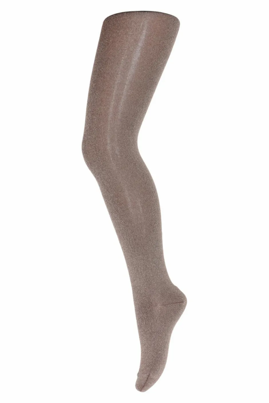 En enkelfarvet glitterstrømpebuks, som har en god pasform. Glittereffekten kan pifte et hverdags look op. Kvaliteteten er blød, da det er 50% bomuld og kradser derfor ikke.