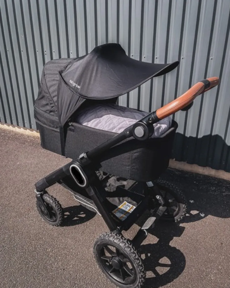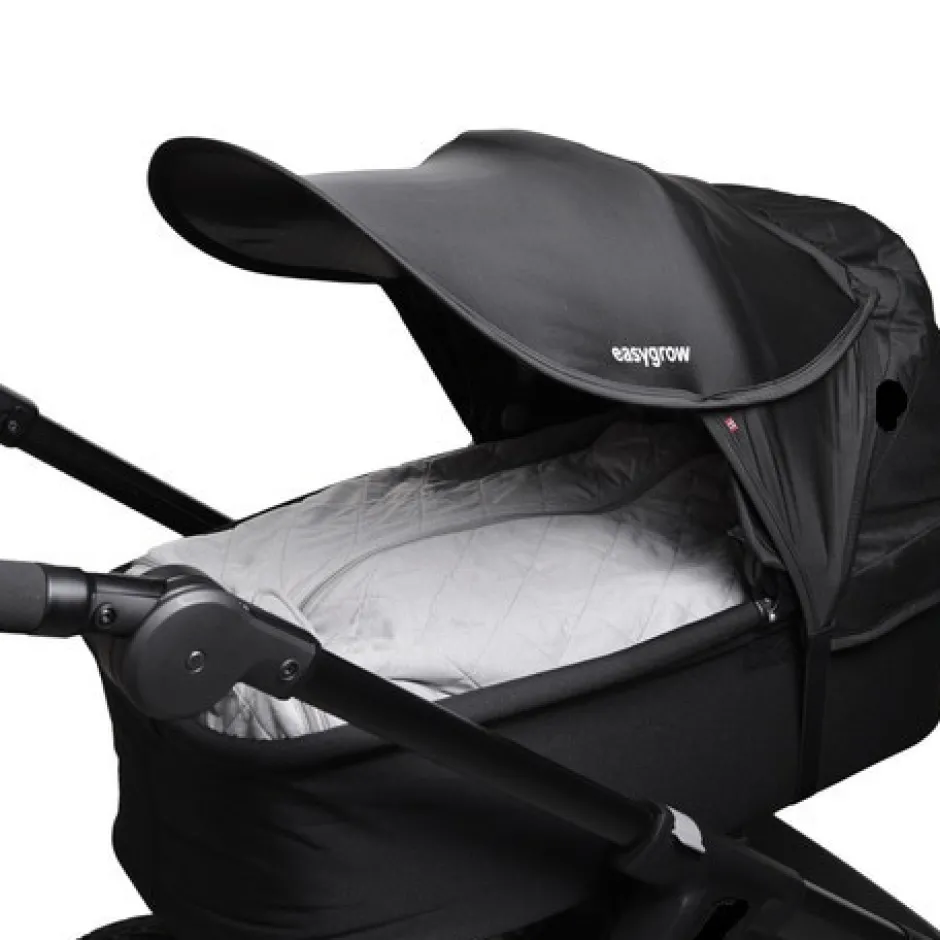 Universal solskærm til klapvogn, der beskytter dit barn mod solen. Let at bruge og passer til de fleste barnevogne og klapvogne. UPF 50+, UVA/B-beskyttelse. Fastgør elastikken under klapvognen. Juster, så den sidder tæt. Nem at tage af og på. Foldes ind i opbevaringslommen på siden af skærmen.