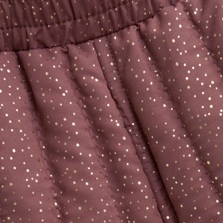 Termosæt fra EN FANT med smukt glimmerdesign – både praktisk og stilfuldt. Dette fine termosæt består af en termojakke og matchende termobukser i samme farve, dekoreret med et flot glitterlook. Jakken åbnes med en kvalitetslynlås foran og har dekorative flæser på skuldrene samt langs ærmernes skæring både foran og bagpå. Den er lidt længere bagpå for ekstra komfort og har brede ribkanter ved ærmerne med hul til tommelfingeren – perfekt til at holde varmen.