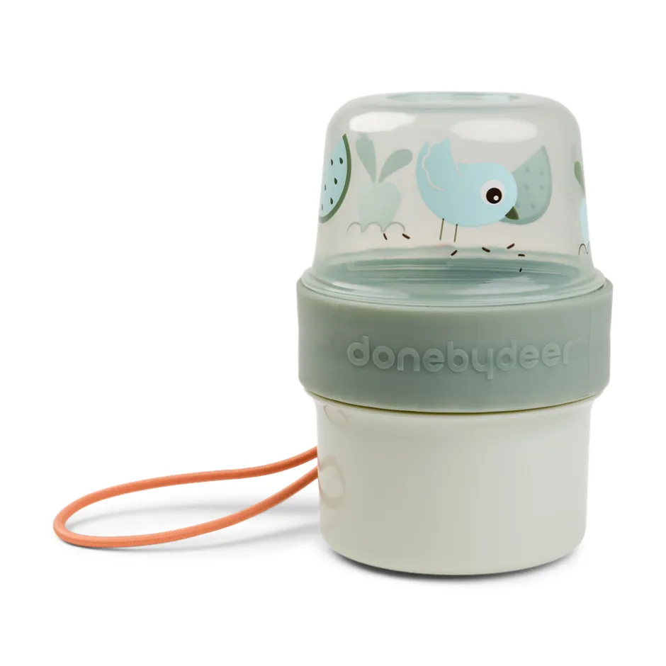Lad Birdee holde din mad frisk og sprød med denne lille to go 2-way snackbøtte. Medbring to forskellige snacks i den samme vandtætte beholder til en dejlig dag. Bøtten er perfekt til en picnic, madpakke i børnehaven eller snacks i skolen. Brug den nedre halvdel af den lufttætte snackbøtte til yoghurt, kiks eller nødder og den øvre del til müsli, bær eller dips. Bøtten har en praktisk bærestrop og er egnet til brug i mikrobølgeovn samt opvaskemaskine. Pak en lækker frokost-snack og lad Birdee våge over den.