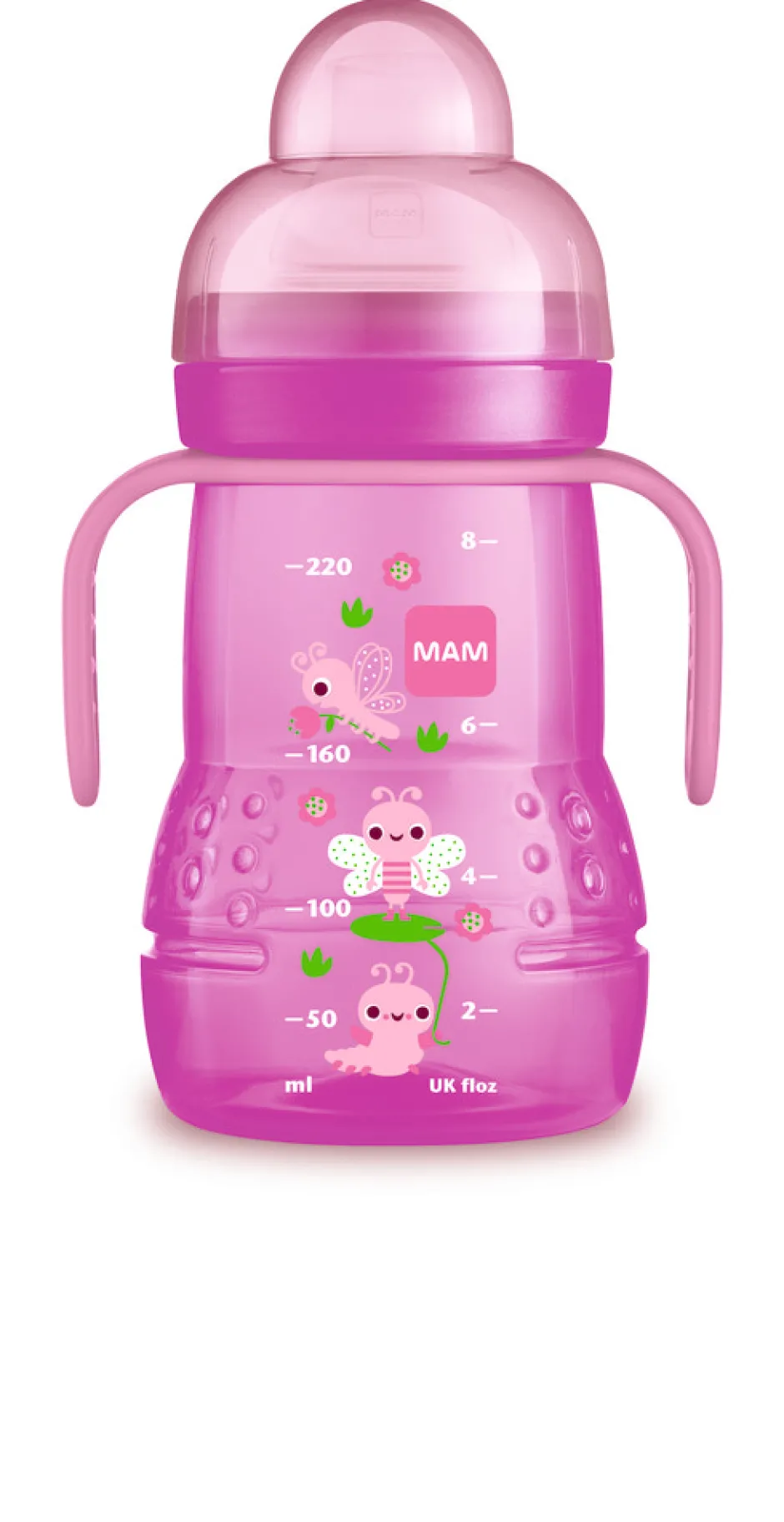 MAM Trainer er den perfekte kombination af funktionalitet og design. Spildsikker flaske med ekstra blød drikketud og gribevenlige håndtag. Den er nem at holde, og gør overgangen fra bryst eller flaske til kop nemmere. Den har et praktisk lækagesikkert låg der kan anvendes som måleske. Drikketuden Extra Soft Bottle Spout medfølger til Trainer.