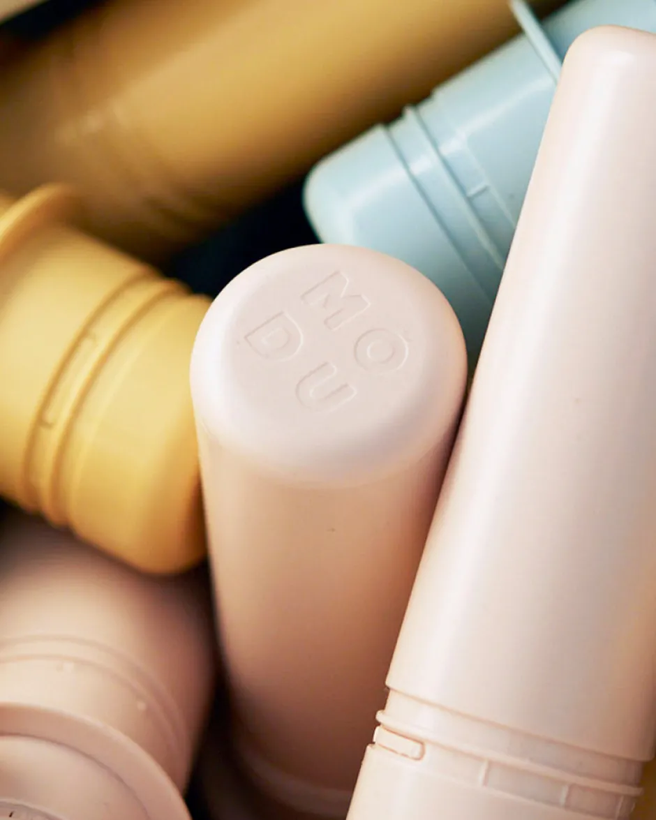 Med MODUs samlepinde kan du forbinde alle dine MODU klodser og dekorere dine kreationer. De lange samlepinde er gode til at stabilisere kreationer, som dit barn skal kunne side eller klatre på, og de kan samtidig give ekstra støtte, så de helt små kan sidde og ligge trygt, når I leger. De korte samlepinde er smarte, når alle de små, sjove detaljer skal tilføjes, eller når hjul eller andre samlepinde gør pladsen trang. Brug også samlepindene som håndtag, øre på en giraf, eller som halen på en gyngehest.