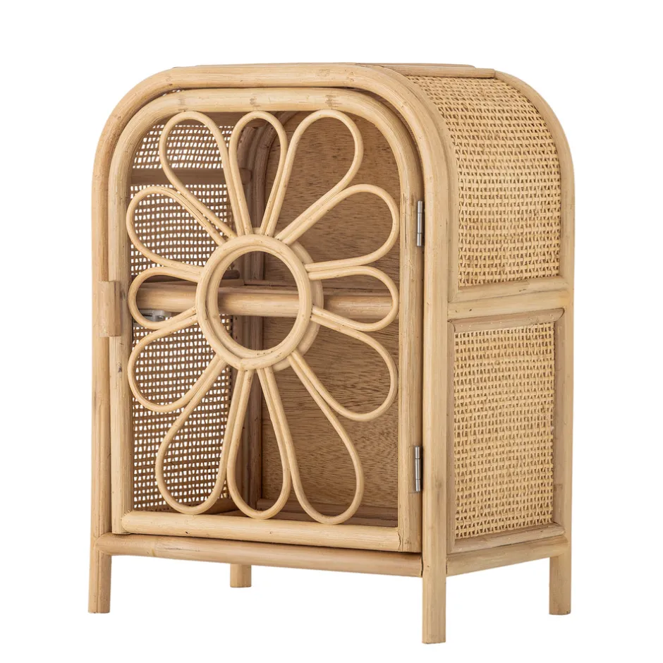Anuke Skabet fra Bloomingville MINI er et charmerende lille møbel med en dekorativ blomstformet låge. Bag lågen finder du en praktisk hylde, ideel til opbevaring af legetøj. Skabet passer perfekt både i børneværelset og i stuen, hvor det kan skjule legetøjet og samtidig tilføje et dekorativt element. Det kan også anvendes som sengebord, hvilket gør det nemt at have de mest nødvendige ting lige ved hånden.