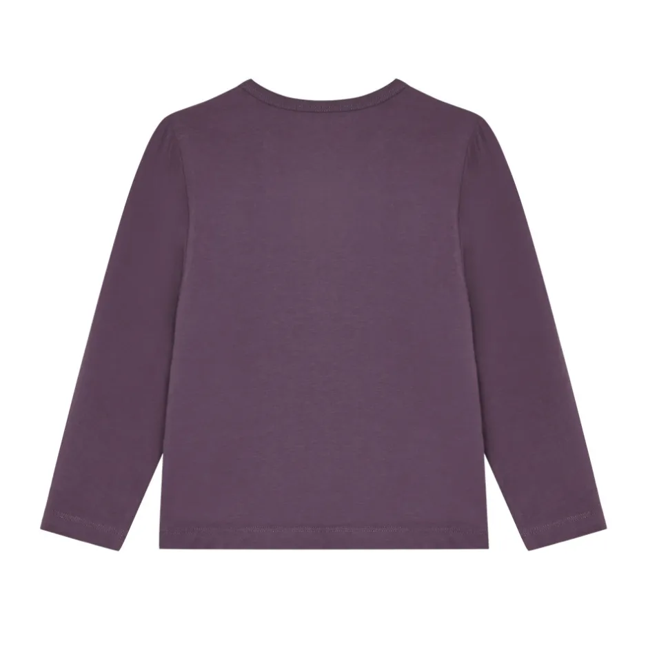 Flot bluse fra Minymo i en lækker, lilla nuance, der skaber et farverigt og fantasifuldt udtryk. På fronten ses et fint print fra Gabby’s Dollhouse, som bringer magi og leg ind i hverdagen. Blusen har lange ærmer og en rund halsudskæring, samt praktiske trykknapper ved den ene skulder, der gør den nem at tage af og på. Perfekt til små eventyrere med hang til sjove figurer og farver.