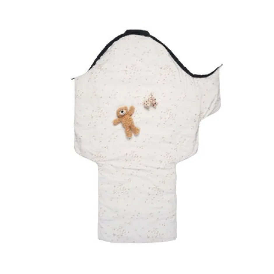 Kan åbnes helt op og bruges som legetæppe eller dyne