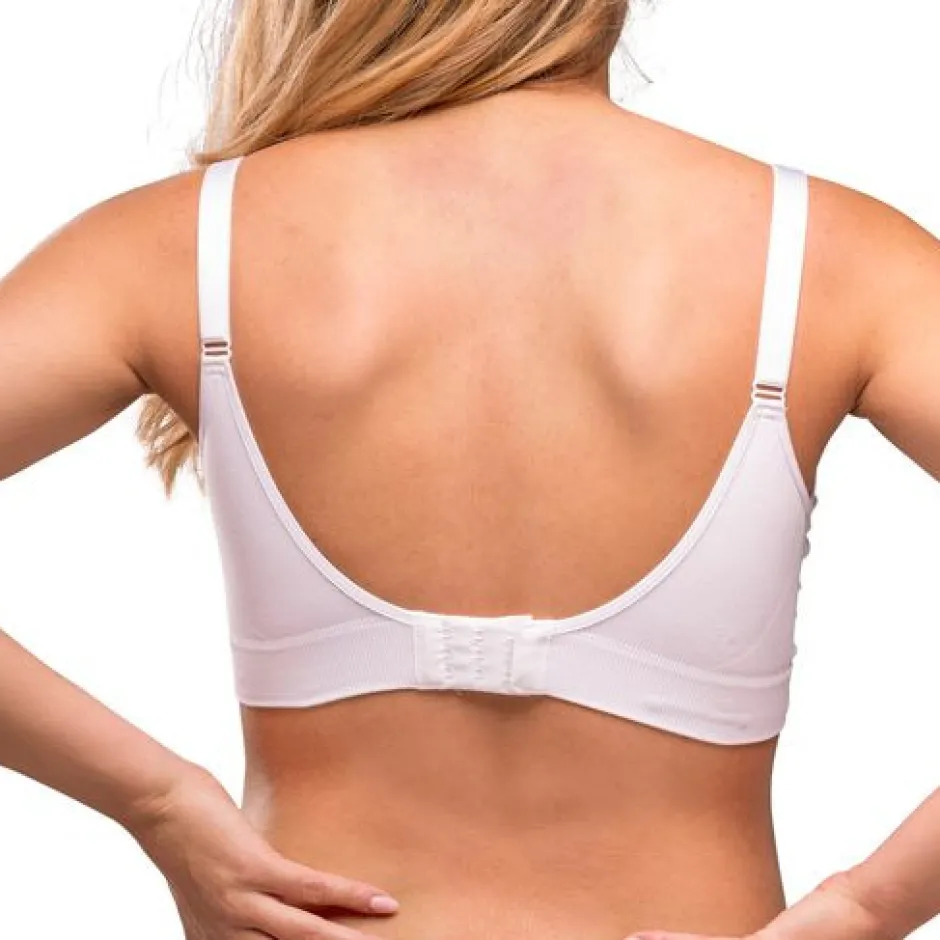 Carriwells Sømløse Amme BH er en blød og behagelig BH, som følger din krop i takt med den forandre sig. Den enkle ammelukning blotter hele brystet når du ammer. Du opnår derved maksimal hud-til-hud kontakt mellem dig og din baby.
