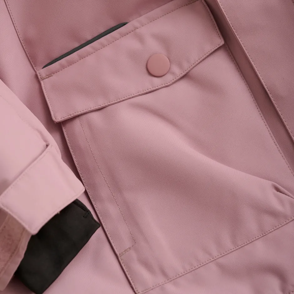 Jakken lukkes med en robust kvalitets lynlås foran, og en blød hagebeskytter sikrer, at lynlåsen ikke generer under hagen. Den aftagelige hætte har en pelskant, som også kan tages af efter behov. Udvendige lynlåslommer giver praktisk opbevaring, og refleksdetaljer på ryggen og ærmerne øger synligheden i mørke.
