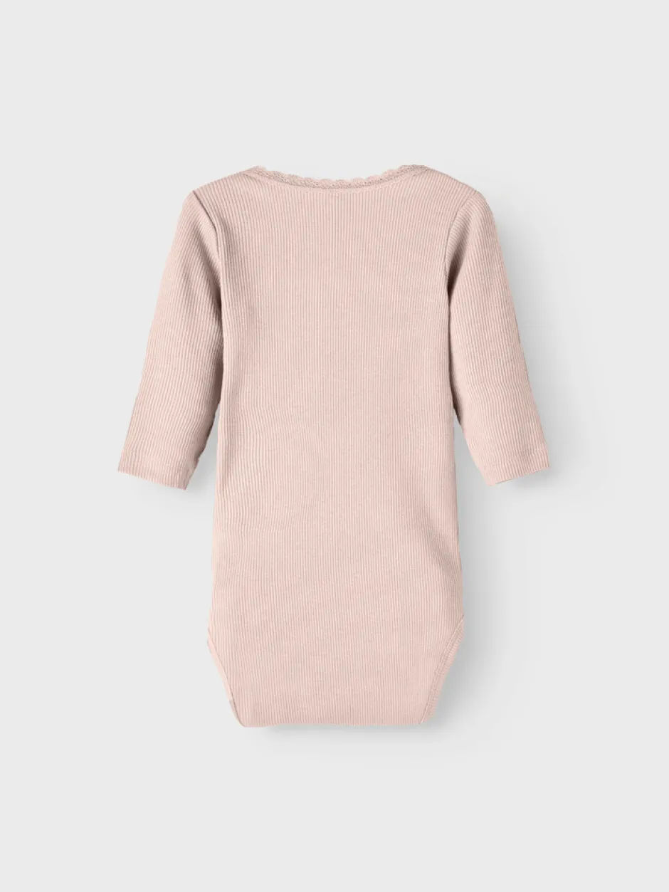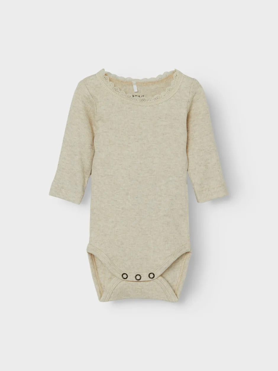 NAME IT Kab 2p langærmet body er et skønt valg til de mindste. Sættet består af to bodyer med lange ærmer, som er lavet i en blød og strækbar ribkvalitet, der sikrer god bevægelsesfrihed og komfort hele dagen. De fine blondekanter ved halsudskæringen giver et sødt og feminint udtryk, mens de praktiske trykknapper i bunden gør det nemt at skifte ble. Bodyerne er perfekte som basis i garderoben og kan bruges både alene eller under andet tøj. De neutrale og afdæmpede farver passer til enhver stil og er nemme at kombinere med andre items.