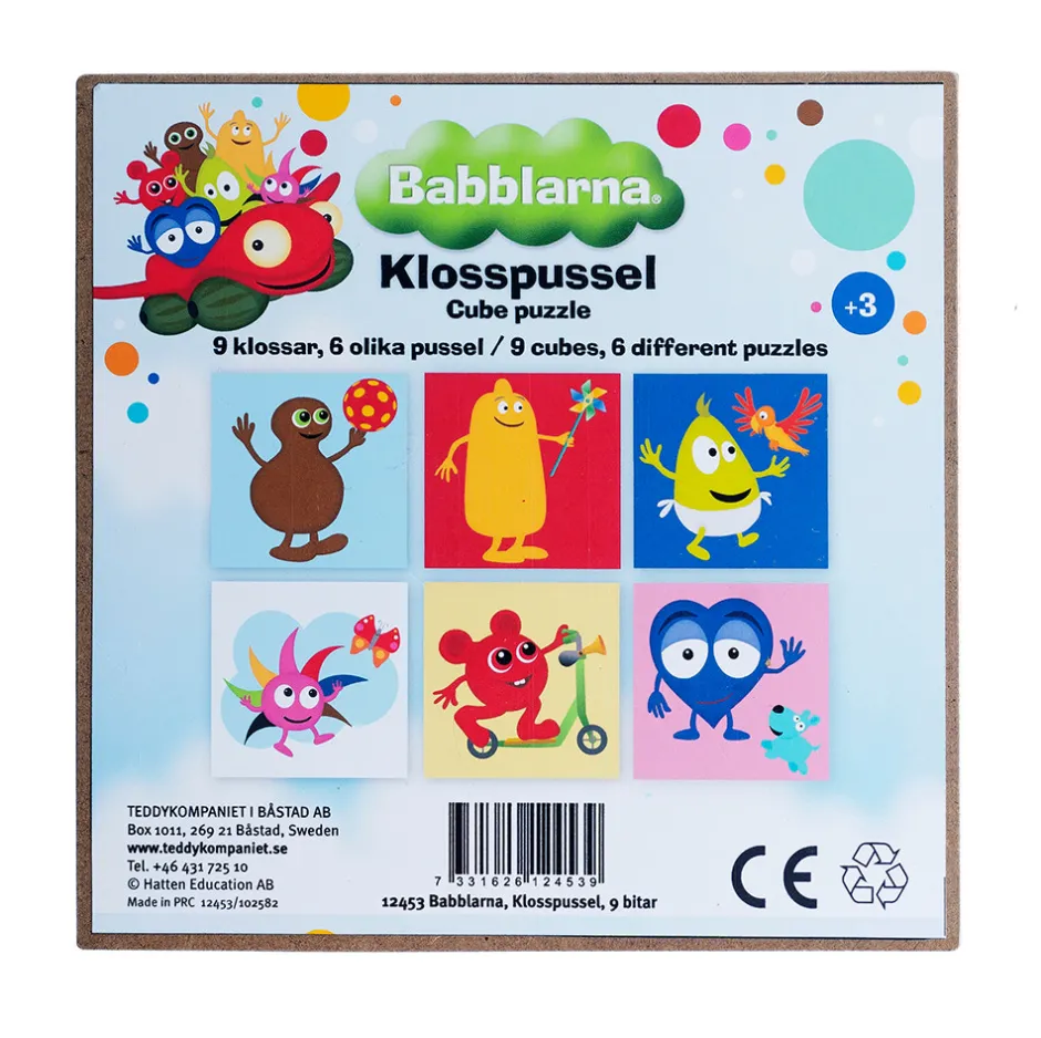 Et underholdende puslespil med Babblarna. Dette puslespil giver barnet mulighed for at opdage 6 forskellige motiver i ét og samme puslespil, ét for hver af Babblarna-figurerne. Den medfølgende bakke hjælper med at holde brikkerne på plads og fungerer også som en praktisk opbevaringsløsning, når puslespillet ikke er i brug.