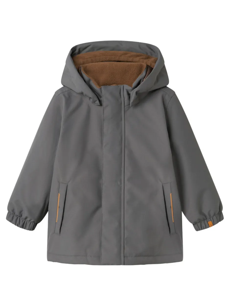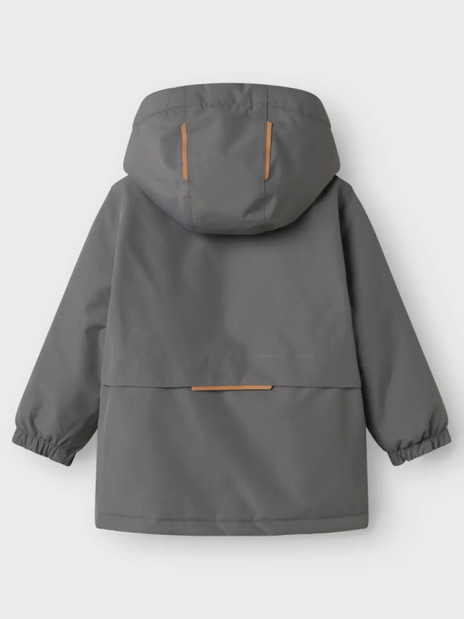 Ekstra detaljer: Badge, lynlåsbeskytter for at forhindre, at lynlåsen fanger i huden side lommer og aftagelig hætte.