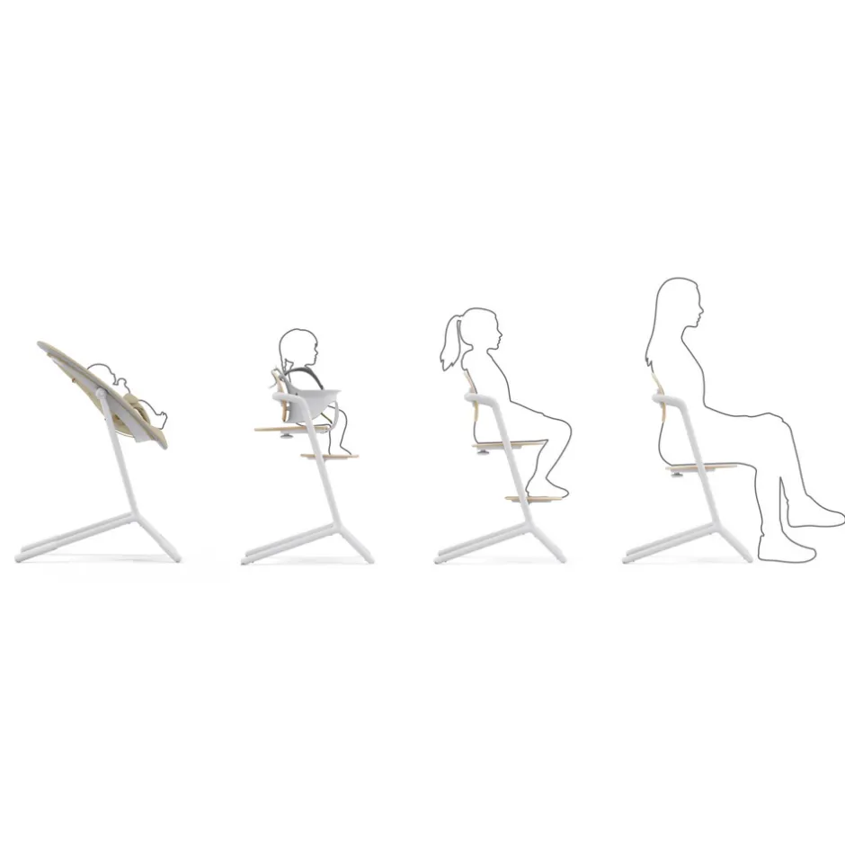 Cybex LEMO 4-i-1 Sæt – en moderne klassiker, der kombinerer tradition med nutidens design. LEMO 4-i-1 er mere end en højstol – det er et elegant, multifunktionelt møbel, designet til at smelte harmonisk ind i dit hjems moderne indretning. Som en moderne klassiker samler LEMO traditionelle håndværkselementer med rene, moderne linjer og tidssvarende farver.