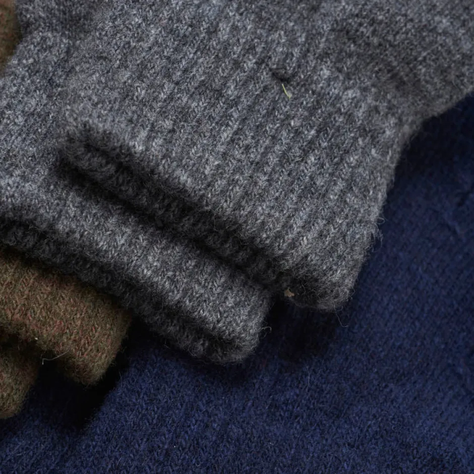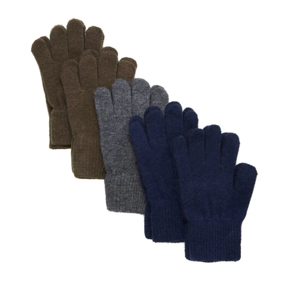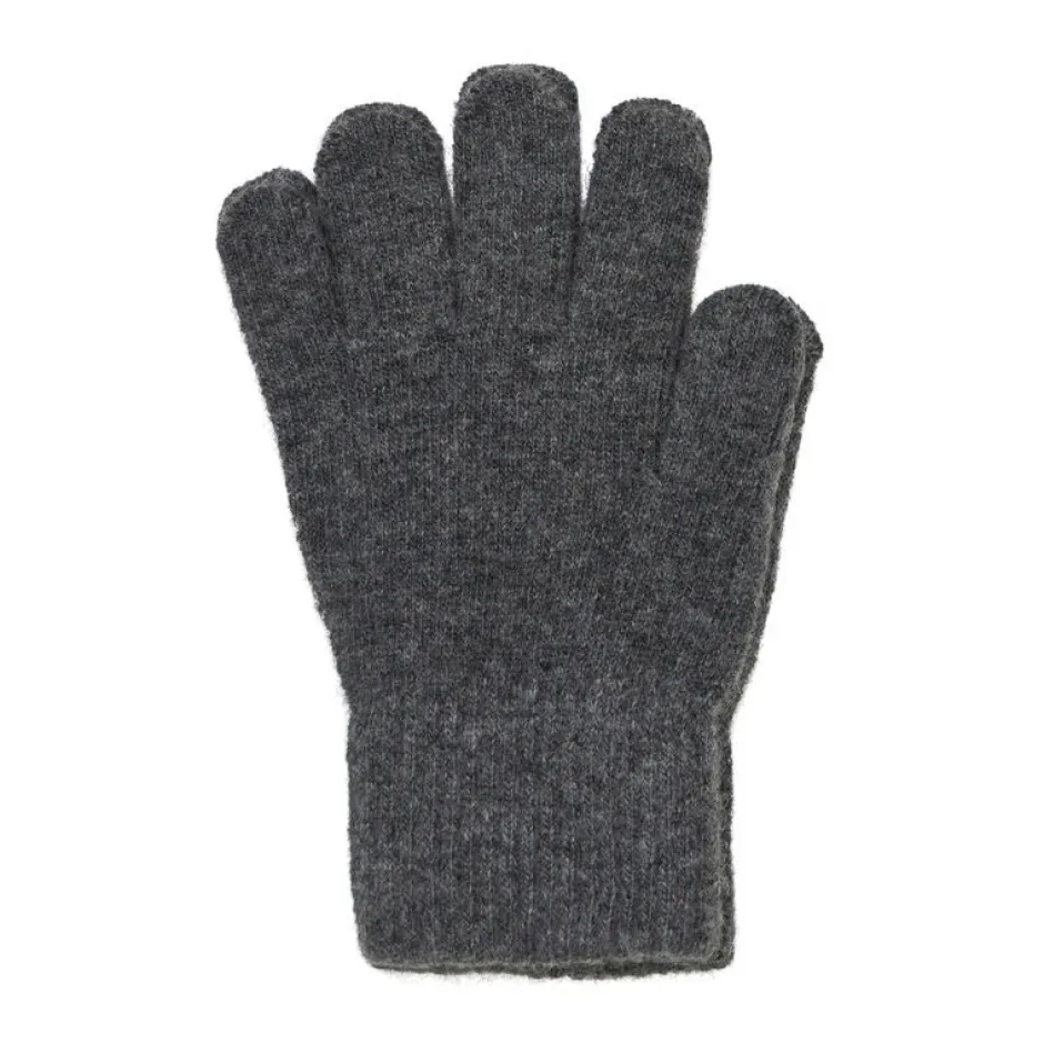 Praktiske strikhandsker med rib om håndleddet. Fingerhandskerne er ensfarvede. De er lavet med uld og masser af stræk, så de er behagelige og varme at have på.