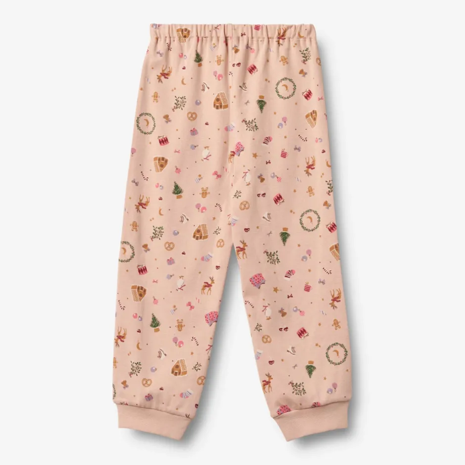 2-delt pyjamas med julemotiver i blødt økologisk bomuld til børn. Wheats charmerende pyjamas med julemotiver er skabt til at sprede magisk julestemning. Med sin bløde pasform er den både let og behagelig for dit barn at have på hele dagen.Det bløde nattøj er behageligt at have på og er perfekt til de kolde efterårs- og vinternætter. Pyjamassættet kommer med matchende T-shirt og bukser. T-shirten er simpel og langærmet, hvor bukserne har en blød elastik i taljen.