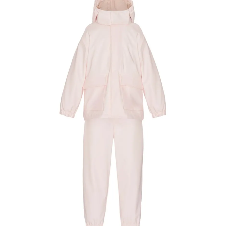 Vores PU-regnsæt er blødt og vandtæt med svejsede sømme. Det er velegnet til leg i vand og regn. PU-belægningen, der er på overfladen, kan ridses og få huller, hvis den gnides mod sand og sten (hårde overflader), eller hvis den bliver revet af grene eller skarpe genstande.