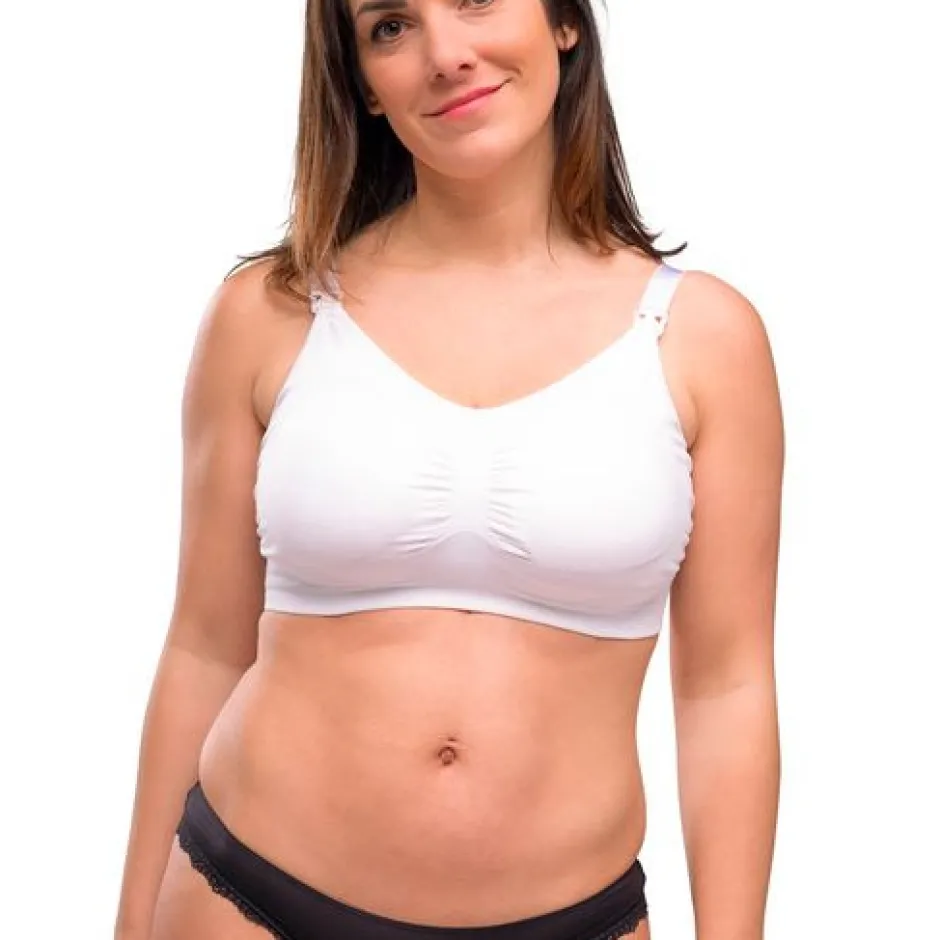 Denne Sømløse Amme BH er en blød og behagelig BH, som følger din krop i takt med at den forandrer sig. Den enkle ammelukning blotter hele brystet når du ammer. Du opnår derved maksimal hud-til-hud kontakt mellem dig og din baby.