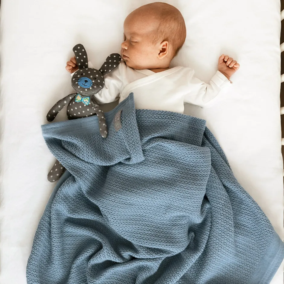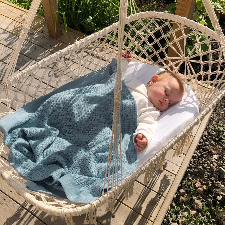 Det blødeste strik tæppe kommer fra Vinter & Bloom. Strik Mesh Blanket i GOTS-certificeret økologisk ring-spundet bomuld er et vidunderligt tæppe til babyens seng. Et net-tæppe i vuggen giver dit barn lige den rette mængde varme. Det specielle netmønster hjælper med at give både isolering og åndbarhed og bliver ikke for varmt. Strik tæppet er også velegnet til brug i barnevognen, så du nemt kan justere temperaturen. Ved at vælge GOTS-certificeret økologisk bomuld beskytter du miljøet og tager også socialt ansvar for de mennesker, der er involveret i fremstillingsprocessen.