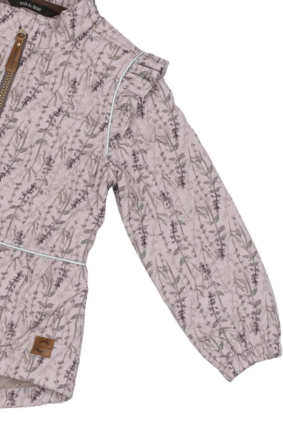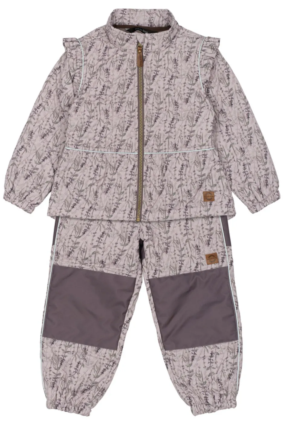 Feminint Thermal+ sæt fra mikk-line med et smukt printmønster (AOP), samt flæser på skuldrene. Dette isolerende termosæt har vandtæt stof, der er imprægneret med BIONIC-FINISH® ECO, som er uden PFAS/flourstoffer. Sømmene er dog ikke vandtætte, men åndbarheden er god. Alt i alt er det et stilfuldt og funktionelt termosæt, der vil holde pigen varm og tør, så hun kan nyde udendørseventyr imellem sæsonerne med omskifteligt, køligt og fugtigt vejr. Sættet har også et indvendigt navneskilt med plads til mere end ét navn, så giv det gerne videre så endnu et barn kan få glæde af det.