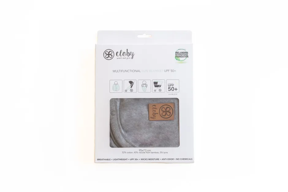 Cloby Multifunktionelt UV tæppe beskytter din baby når i går ud. Det bløde og lette tæppe tilbyder UPF 50+ solbeskyttelse, der blokere over 98% af solens skadelige stråler uden brug af kemikalier. Med to trykknapper har tæppet uendelige muligheder. Sæt det på din klapvogn eller barnevogn, eller brug det som håndklæde, som cover over bæresele eller blot til hygge. Mange muligheder i ét tæppe.