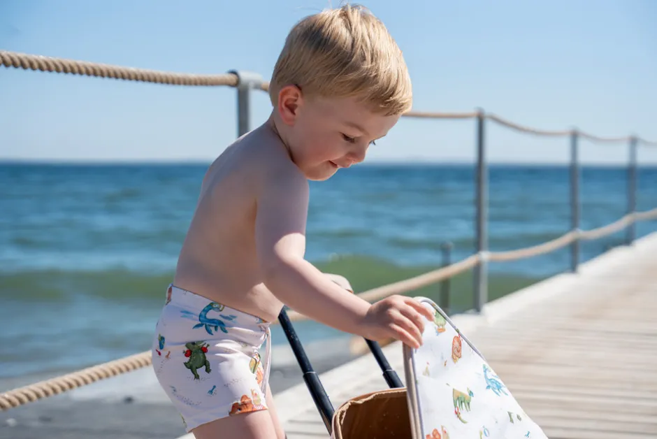 Badeshortsene begejstrer små og større børn med flotte, håndtegnede motiver.