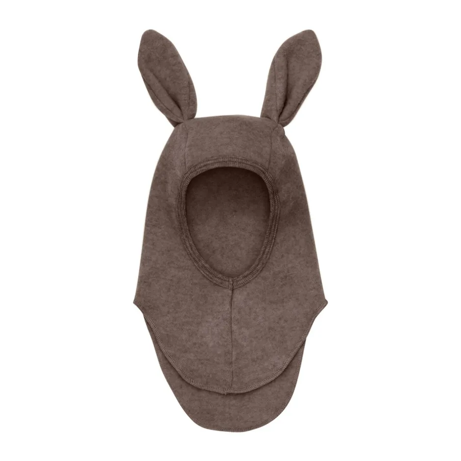 Huttelihut laver utroligt fine og bløde elefanthuer til babyer og større børn. Denne smarte elefanthue er fremstillet i blød uldfleece og har lange kaninører på toppen, der tilføjer et sødt og legende touch. Elefanthuen har en rund hovedform og en smal elastisk ribkant omkring ansigtet, hvilket sikrer en god pasform og komfort. Derudover har den et praktisk split-design med ekstra længde bagpå, så barnet holdes varmt.