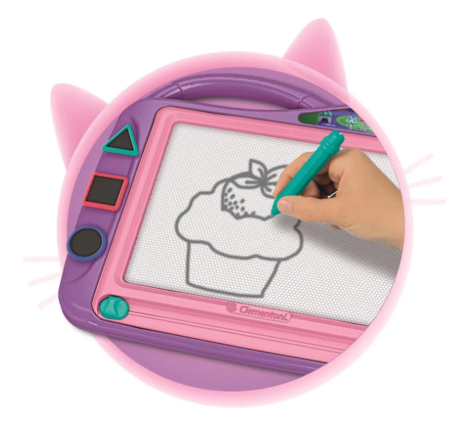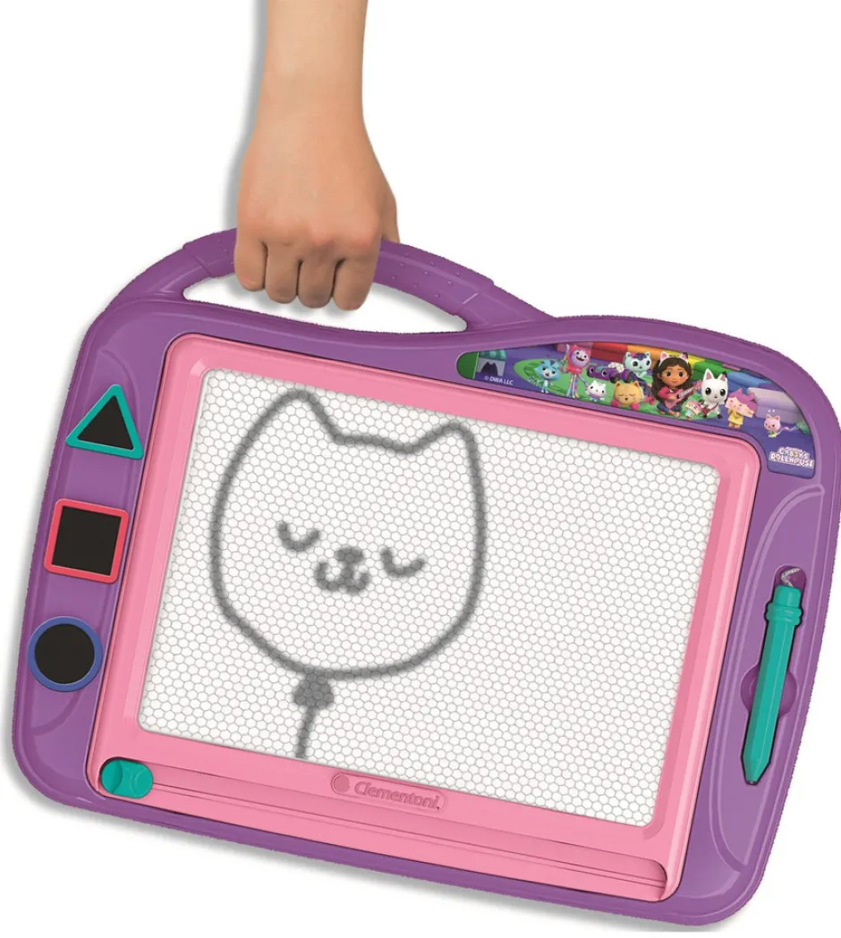 Et helt magisk tegnebræt til at tegne uendeligt og have det sjovt med figurerne fra Gabby’s Dukkehus. Skriv, tegn og slet så meget du vil! Med et praktisk håndtag til at bære det, hvor end du vil, og tre forme til at berige dine kreationer.