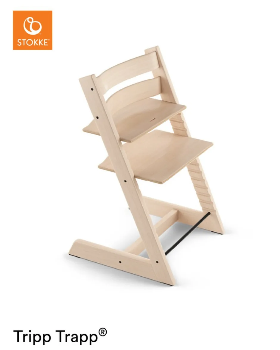 Tripp Trapp® højstolen er designet af Peter Opsvik helt tilbage i 1972 og har været et fast møbel i mange hjem igennem tiden – måske har du som forældre siddet i én? Tripp Trapp® højstolen er produceret i dyrket bøg, som er en stærk træsort, der gør produktet stabilt og holdbart, og sikrer en lang levetid. Højstolen løfter barnet op til spisebordet og skaber nærhed og fællesskab mellem barn og voksen, om det er spisetid eller hyggetid ved spisebordret. Det er let at tilpasse sidde- og fodplade i både højde og i dybden, i takt med at barnet vokser. Dermed opnås en optimal siddestilling med god bevægelsesfrihed, og støtte for både fødder og ryg. Den stabile fodplade giver dit barn sikkerhed og frihed til at bevæge sig på stolen, hvilket stimulerer barnets motoriske udvikling. Fuld fodstøtte sikrer desuden at barnets ben ikke kommer til at sove. Når stolen er justeret korrekt sidder dit barn behageligt og ergonomisk korrekt uanset alder. Med Tripp Trapp® højstolen kommer dit barn til at sidde med ved spisebordet og nyde måltiderne sammen med resten af familien. Det solide og holdbare design gør at Tripp Trapp® stolen kan anvendes som højstol og senere som en ekstra stol – når der er gæster, eller når der er brug for en skrivebordsstol, og med et klassisk look vil stolen aldrig gå af mode.