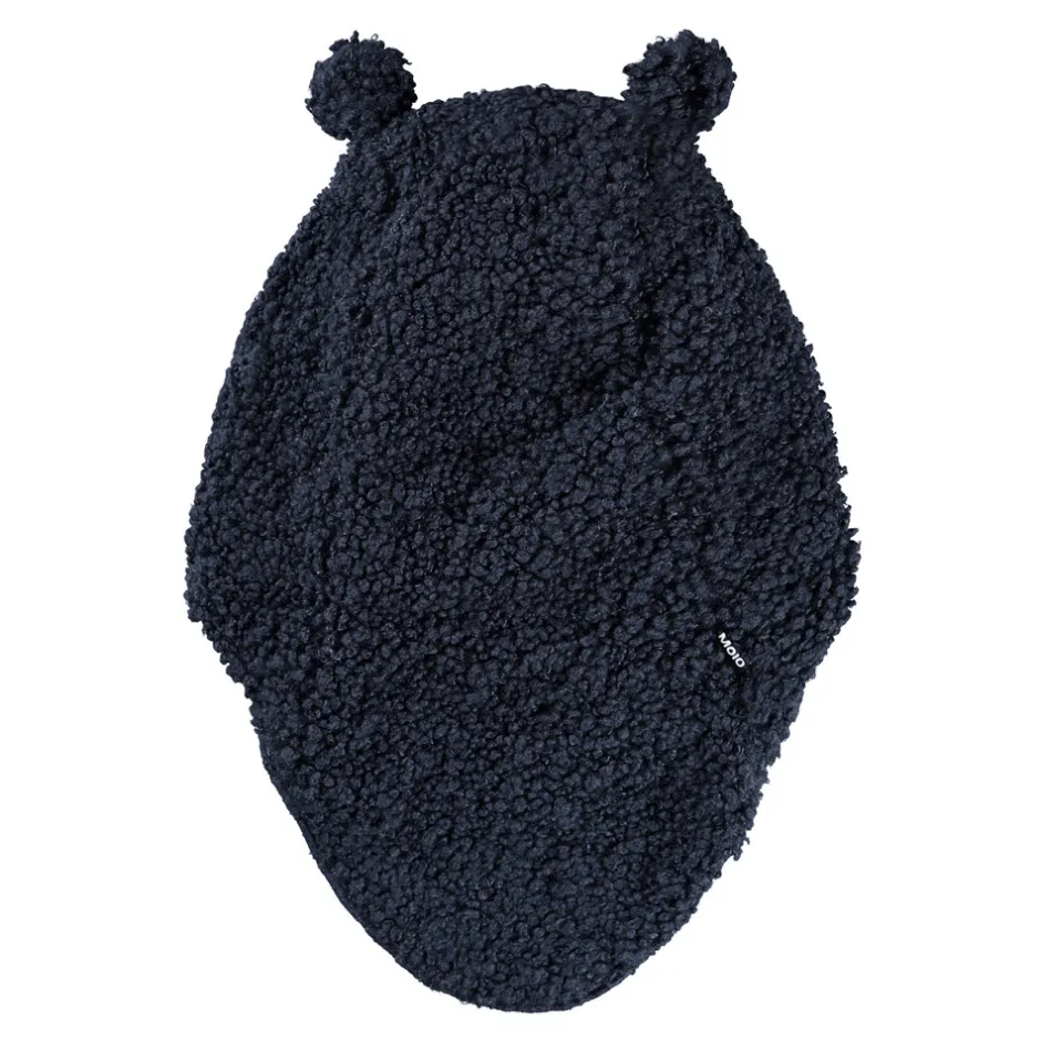 Elefanthue fra Molo i blød teddy-fleece med fine bamseører. Huen dækker både hoved, hals og ører og holder barnet dejligt varmt. Indvendigt er den foret med blød jersey i gråmelange for ekstra komfort.