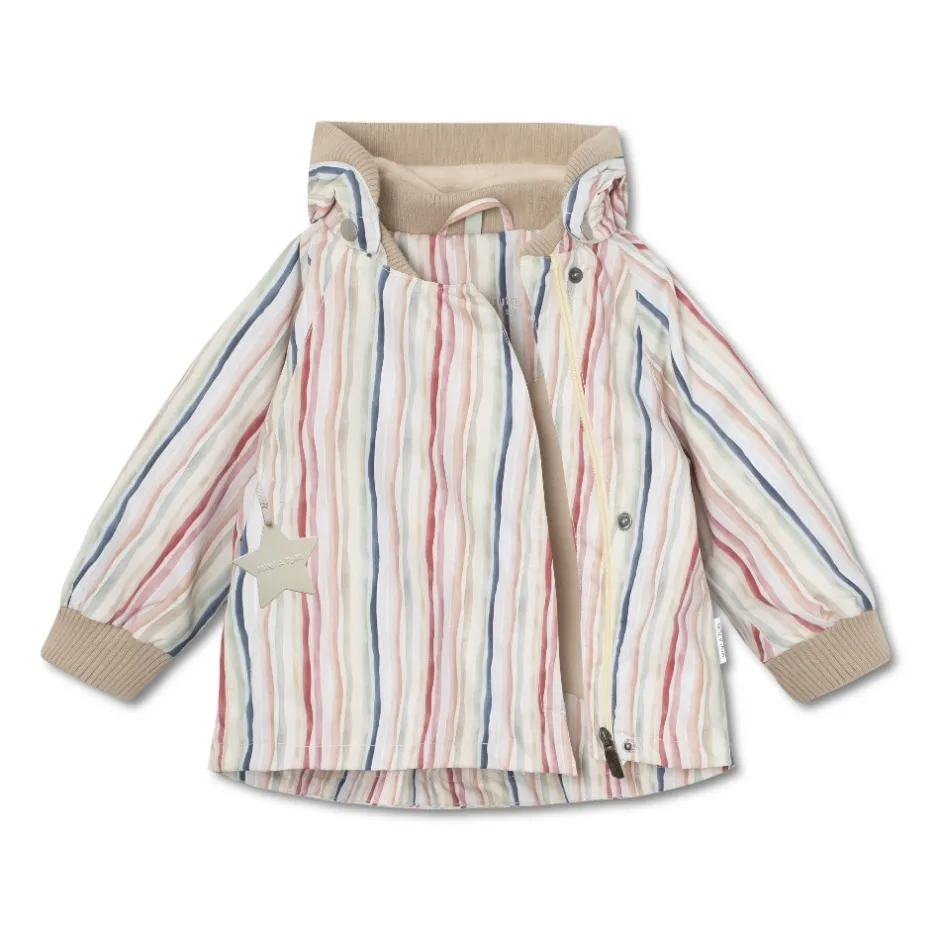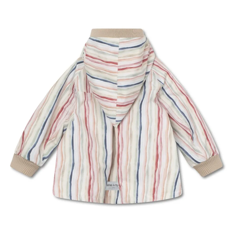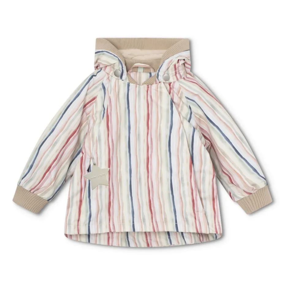 MINI A TURE jakke til de små med 10 års garanti og håndtegnet print inspireret af naturen. Jakken har et feminint snit med a-facon og læg bag til for ekstra bevægelsesfrihed. Lukkes med skjult, skrå lynlås foran og har aftagelig spids hætte. MINI A TURE refleksstjerne findes i lommen, og der er et mindre reflekslogo bagpå. Fremstillet af genanvendt polyester. Vindtæt, vandtæt og åndbar. Jakken har et lunt, blødt fleece foer.
