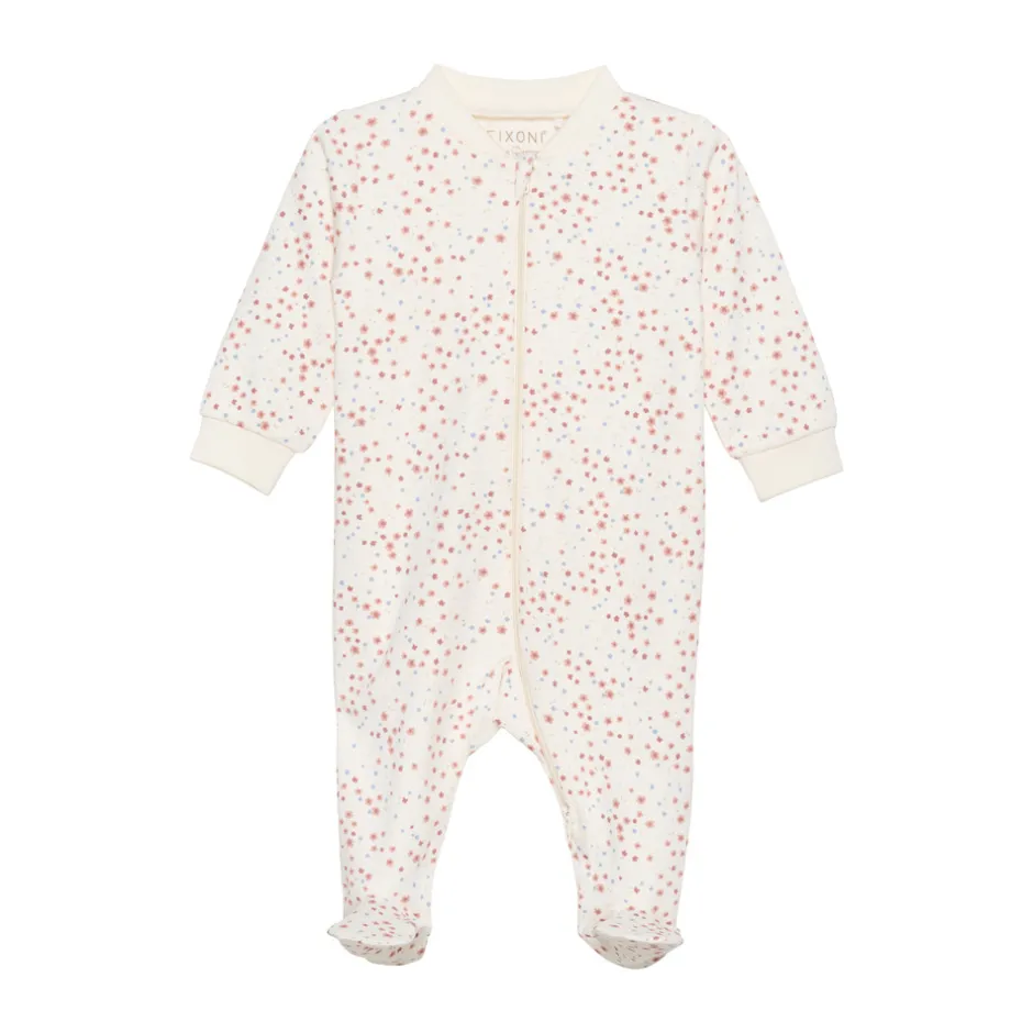 Natdragt fra FIXONI med påsyede fødder. Natdragten lukkes med lynlås foran fra hals til ankler. Dragten er lavet i bomuld med all-over-print. Certificeret i hht. STANDARD 100 by OEKO-TEX® cert. nr. SH020 156011 TESTEX, tiltro til tekstiler