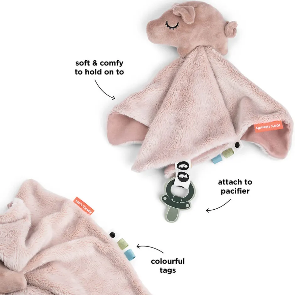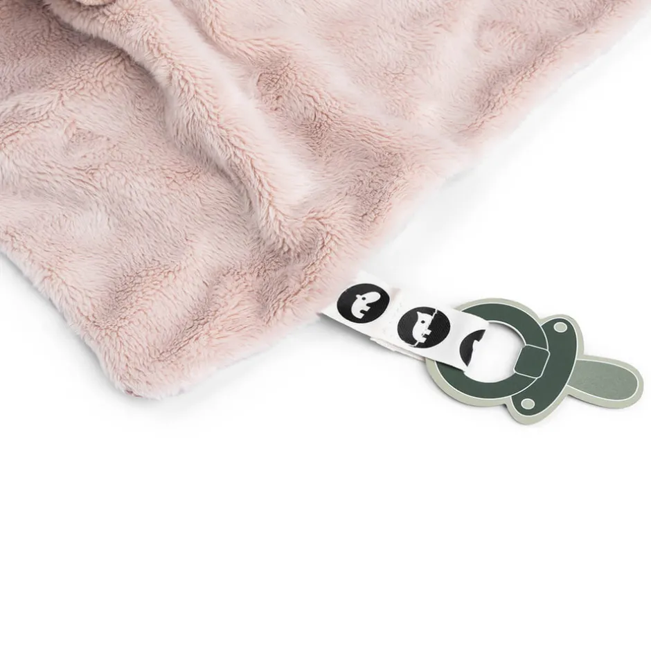 Med velcro-clips kan du nemt holde en sut i nærheden, så den altid er lige ved hånden. Nussekluden er perfekt til en rejse til drømmeland eller en udflugt til nye steder. Den søde vil trøste dit barn og gøre det trygt.