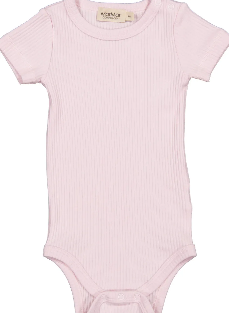 Enkel kortærmet modal bodystocking, der bliver lukket med trykknapper mellem benene for nem bleskiftning. Bodystockingen er ribstrikket, blød, holder form og farve og har elastan i sig som gør den strækbar og behagelig at have på.