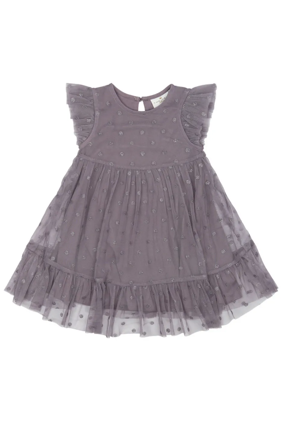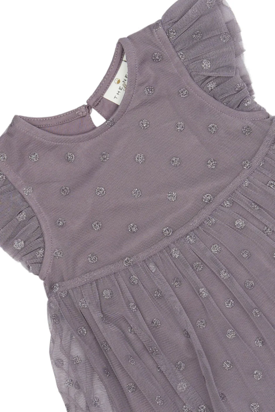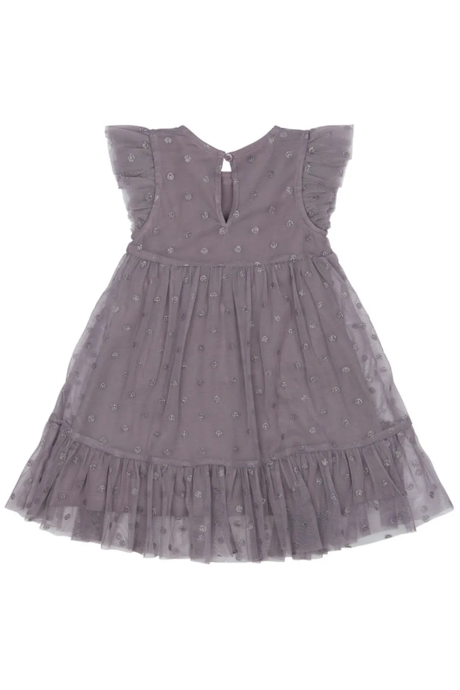 Fortryllende mesh-kjole fra THE NEW siblings. Den vil med garanti begejstre enhver lille pige og få hende til at stråle. Denne charmerende kjole i to lag består af en underkjole i blød, åndbar bomuld og et ydre lag af blødt, gennemsigtigt mesh stof med prikker. Det er den perfekte festkjole til særlige lejligheder.