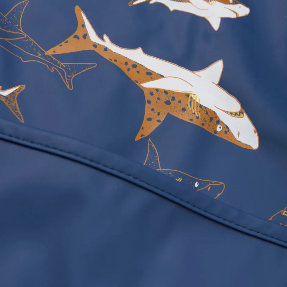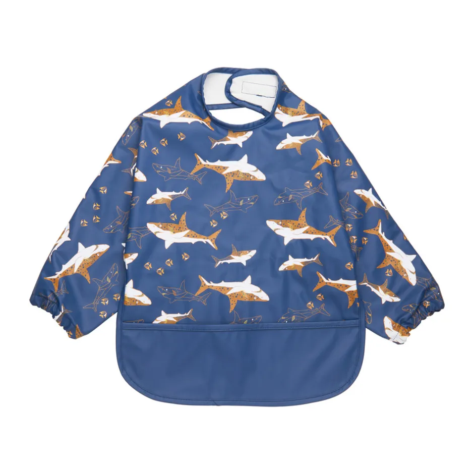 Smart PU-hagesmæk/jakke lavet i recycled materiale. Undgå pletter på dit barns tøj. PU-jakken er utrolig praktisk. Den har velcrolukning i nakken og en opsamlingslomme foran. Praktisk til både spisetid eller ved leg med maling m.m. Med all-over-print.