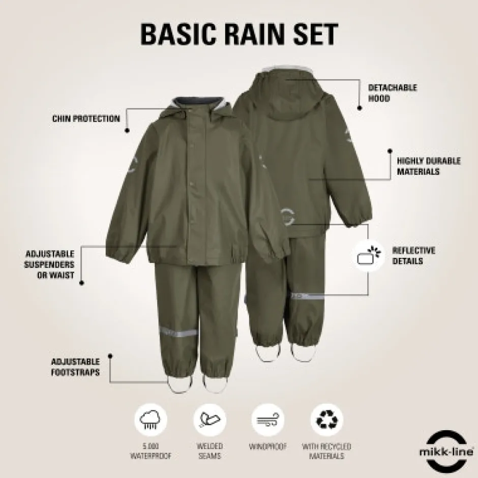 Klassisk PU regntøj uden seler fra mikk-line. Sættet består af en vandtæt regnjakke og regnbukser, der begge er lavet af 100% genanvendt og blødt PU-materiale. Regntøjet er skabt til at børn kan trodse regnen og have det sjovt med at hoppe i vandpytter, glide ned ad den våde rutsjebane, lege i den våde sandkasse osv. Placer de justerbare fodstropper under støvlerne, for at holde fødderne tørre og undgå at bukserne glider op. Buksernes taljeomkreds kan tilpasses efter behov, og så har sættet har et indvendigt navneskilt med plads til mere end ét navn, så giv det gerne videre, så endnu et barn kan få glæde af det.