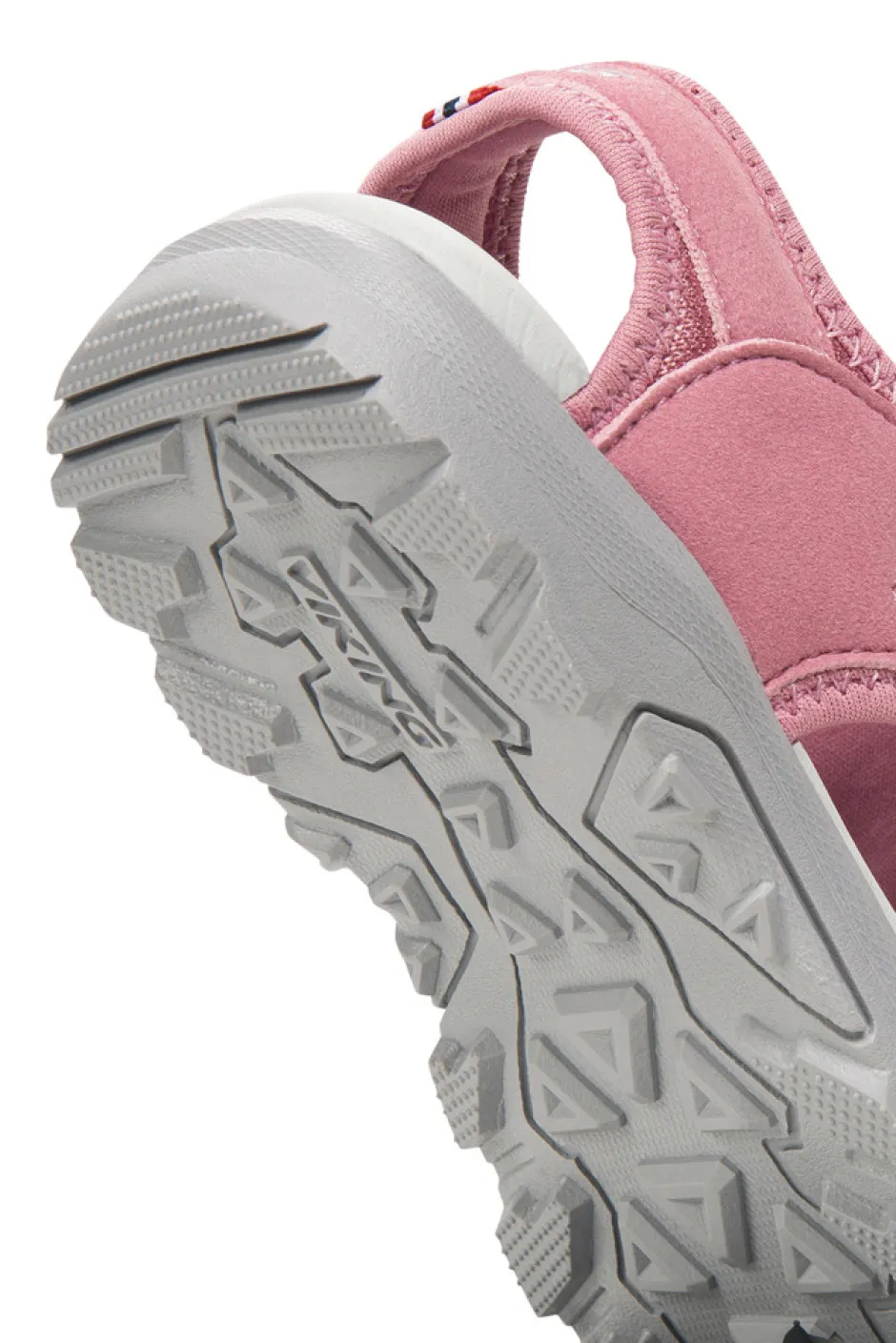 Sandvika er en beskyttende, saltvandsbestandig sandal til aktiv leg, –et godt valg til stranden. Denne sandal er lavet af bløde og åndbare materialer som giver ventilation på varme sommerdage. Designet er med lukket tå, der giver fremragende beskyttelse af de små fødder. Alle materialer er saltvandsbestandige, og quicksnørebåndet sikrer den bedste pasform og overlegen komfort. Ydersålen er lavet af naturgummi med et kraftigt mønster, som giver et godt greb på træstammer eller løse genstande. Sandvika bringer sommersjov, komfort og sikkerhed til alle aktiviteter og overflader. Kan vaskes ved 30 grader. Vi anbefaler ikke brug af skyllemiddel.