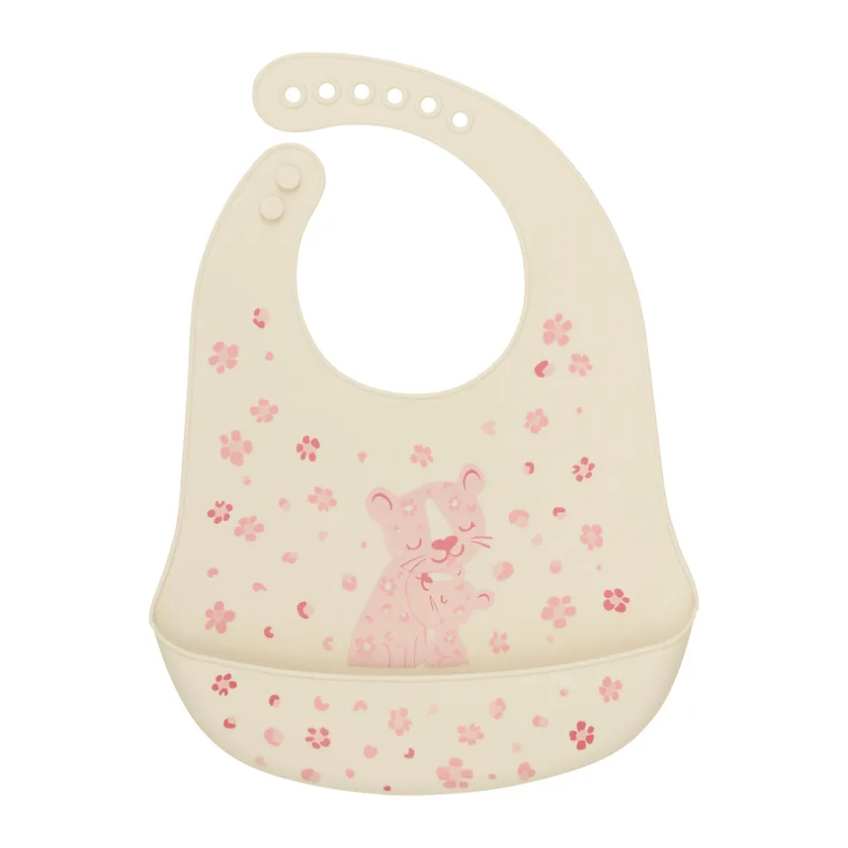 Spisesmæk i silikone. Praktisk hagesmæk der er blød og nem at bruge til baby og børn. Med praktisk opsamler der gør spisetiden nemmere.