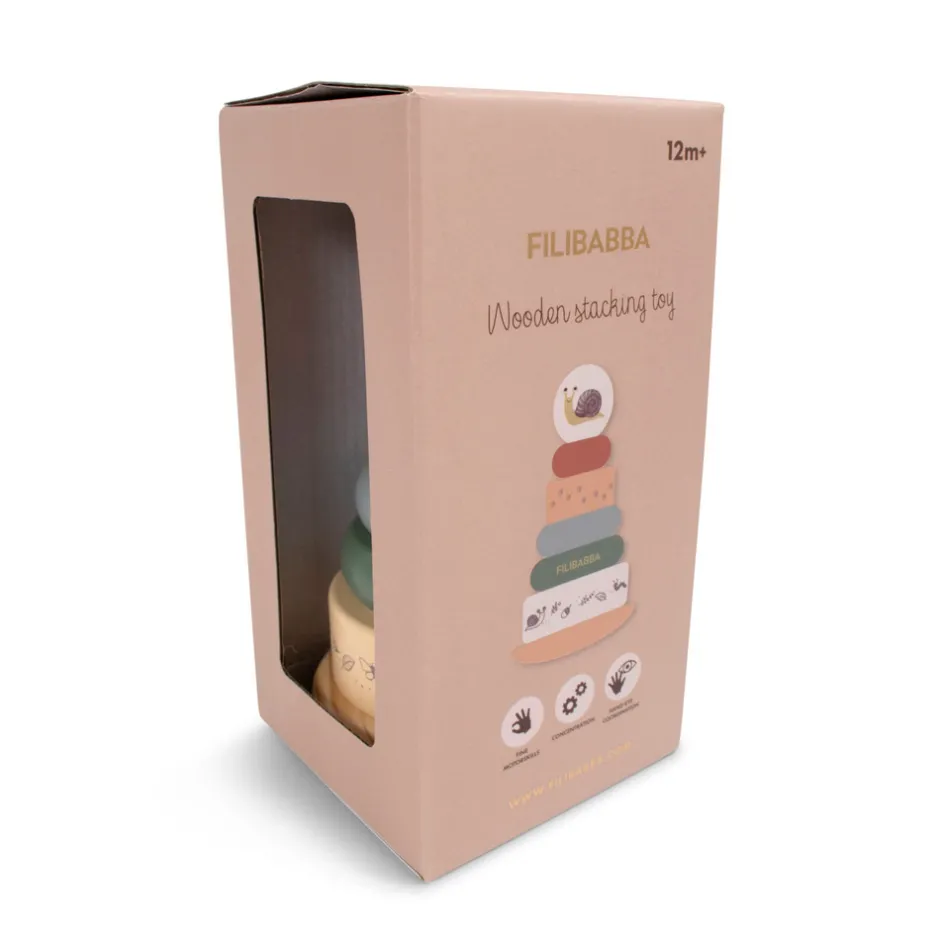 Stablelegetøjet med den charmerende snegleillustration leveres i en smuk æske.