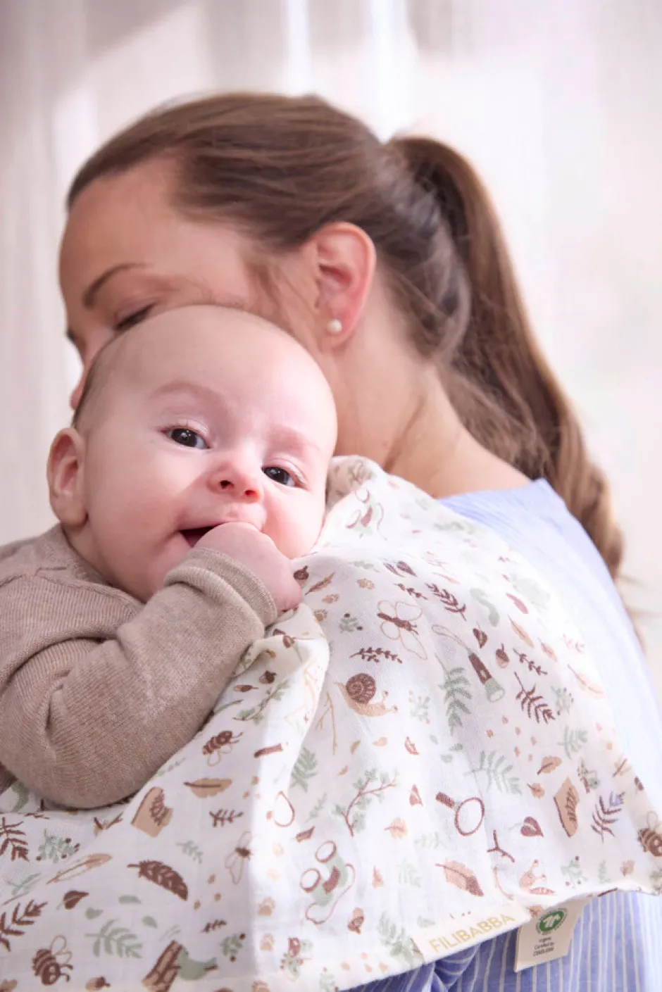 Omfavn din lille med FILIBABBA-svøbet. Lavet af førsteklasses GOTS-certificeret økologisk bomuldsmusselin. Dette 120 x 120 cm store svøb er designet til alsidighed og komfort. Svøbets løst vævede, åndbare stof sikrer en hyggelig og åndbar følelse for din baby. Perfekt til at svøbe og berolige dit lille barn. Svøbet er også et ideelt ekstra lag til kravlegården eller aktivitetsmadrassen. Nyd varmen og blødheden fra Filibabbas svøb, der tilbyder komfort og beroliger din baby.