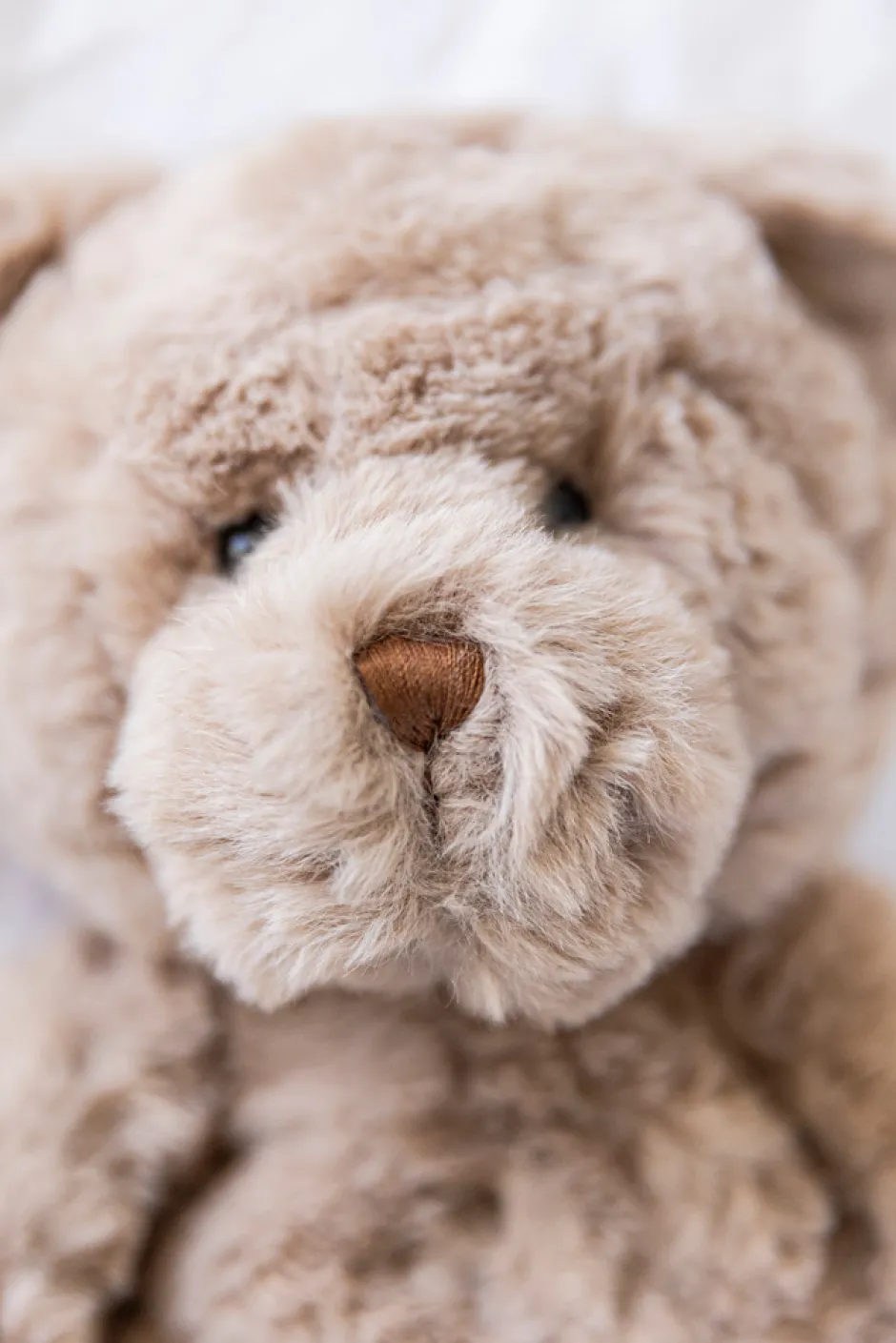 En trofast ven og følgesvend. Sture er en klassisk bamse i en stilfuld grå farve. Øjnene er lavet af glas, og næsen er lavet af garn. En sand ven for livet – barnets ven for livet.
