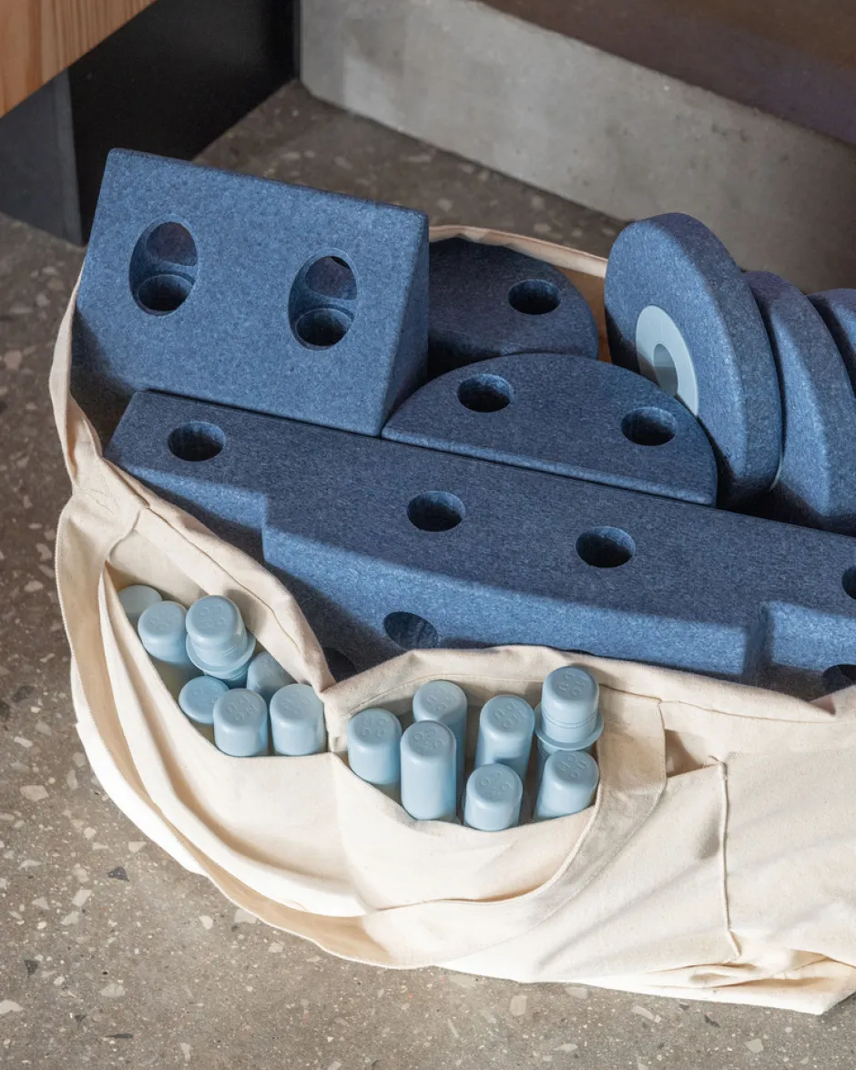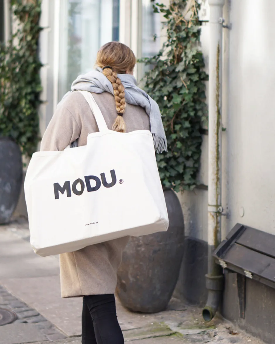 Smart rejsetaske der gør det nemt at tage MODU med på farten – fx til sommerhus eller til legeaftaler. Tasken har en lomme til samlepinde og hjul og kan indeholde et helt Dreamer sæt. Er lavet af genanvendt bomuld. Mål: 55 x 45 x 23.