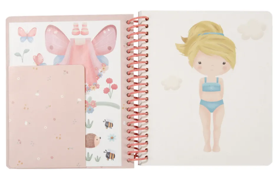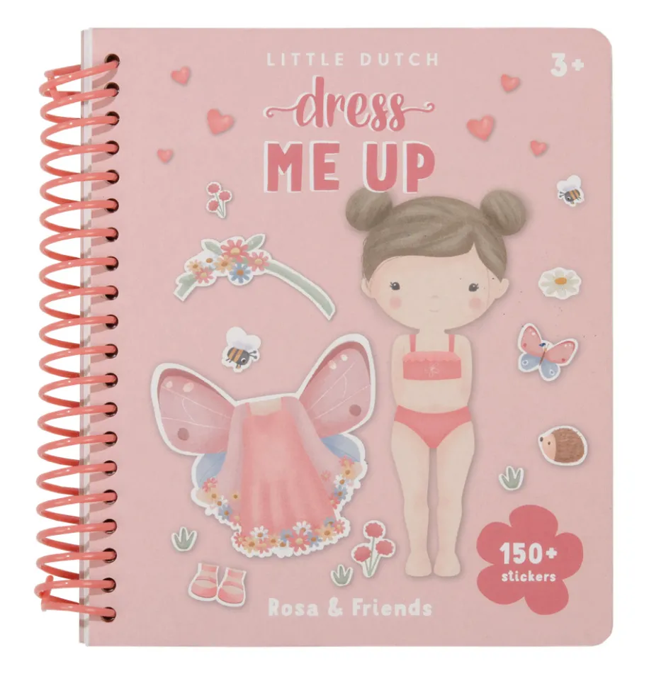 Hvad skal du have på i dag? Med Little Dutch Rosa & Friends påklædningsbogen er du en rigtig lille modestylist. Bogen indeholder 24 sider med billeder af blandt andet Rosa, Evi og Julia samt 12 sider med klistermærker af det smukkeste tøj og tilbehør, pigerne kan have på. Om du vælger en smuk lyserød prinsessekjole eller foretrækker at holde det enkelt – det er op til dig. Bogen har en praktisk spiralryg, er lavet af robust pap med de genkendelige Little Dutch designs og farver. Bogen er perfekt både derhjemme og til at have med!