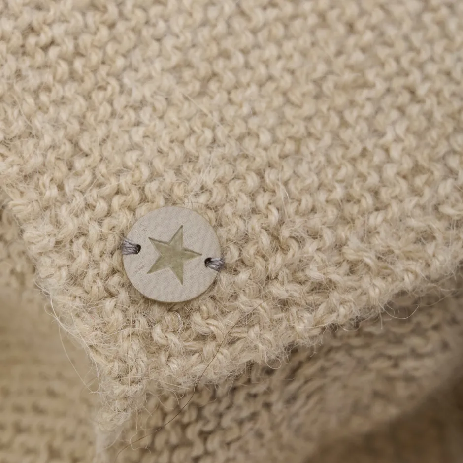Fineste HUTTEliHUT hjelm i strik med en sød alpakakvast på toppen. HUTTEliHUT hjelmen har en rund hovedform der dækker både ører og pande. Huen bindes under hagen med bindebånd. Babyhjelmen er håndstrikket i dejlig blødt alpakauld. Fairtrade produkt fra Bolivia. Pomponen er et Fairtrade produkt, lavet med pels fra alpakaer i det bolivianske højland. Hver pompon er unik og vil variere i farve og udtryk. Ingen farvning er involveret – undtagen naturens egen. Pomponen er syet i hånden og kan vaskes. Se vejledningen på plejeetiketten.