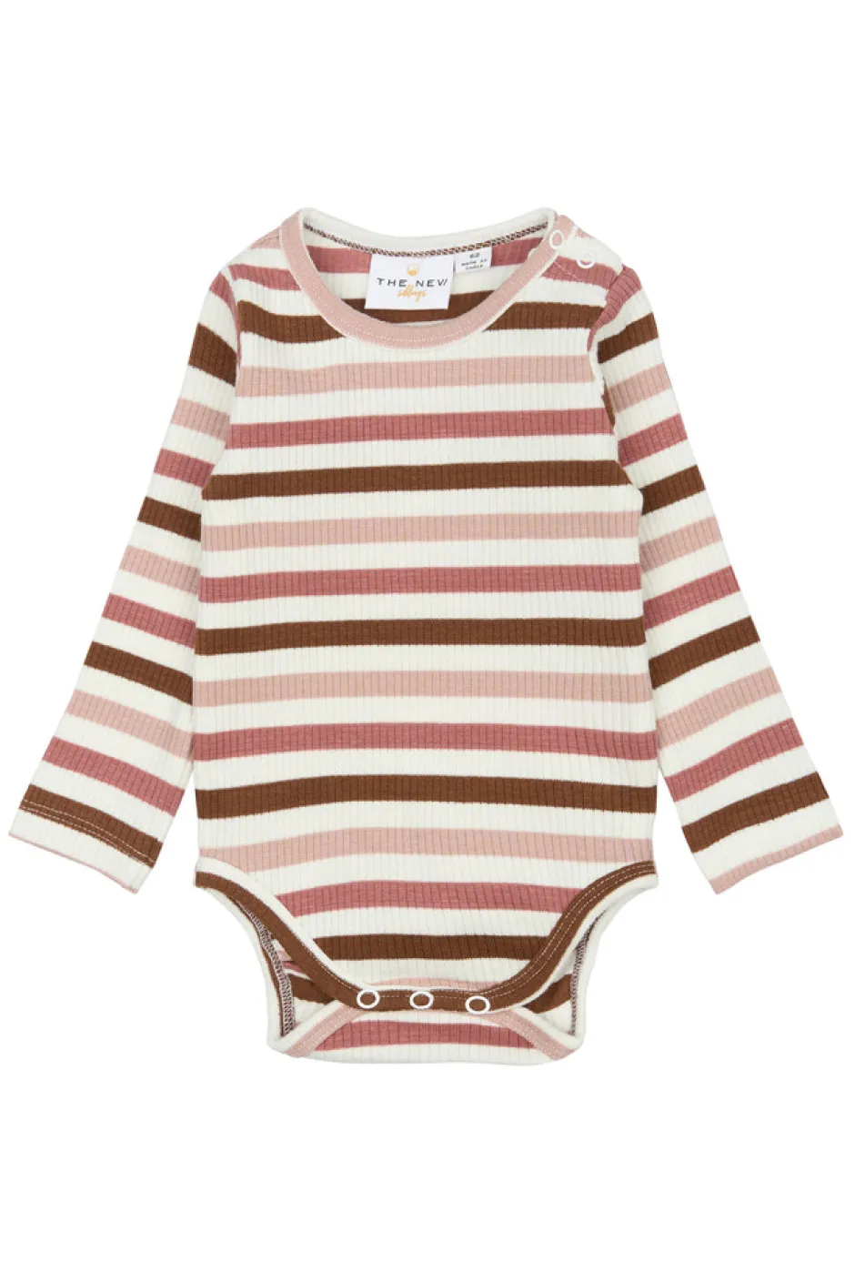 Langærmet stribet babystocking i et stilfuldt og strækbart ribstof. Denne enkle bodystocking fra THE NEW siblings er en essentiel hverdagsfavorit. Stoffet er blødt, let og åndbart. Uanset om dit barn kravler, leger eller danser, er denne bodystocking en vidunderlig ledsager til nye eventyr.