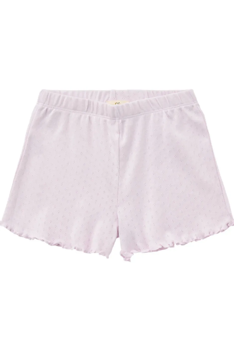 Pointelle-shortsene er den perfekte kombination af komfort og stil til varmere dage. Disse shorts er lavet af blødt, åndbart stof med et smukt pointelle-strikket design og giver en let, luftig følelse, der er perfekt til leg, udendørs eventyr eller afslapning derhjemme. Den elastiske linning sikrer en sikker pasform, mens det afslappede snit giver mulighed for nem bevægelse. Disse shorts er enkle, men stilfulde, og de kan parres med en række toppe for et alsidigt og behageligt look, der er perfekt til sommer.