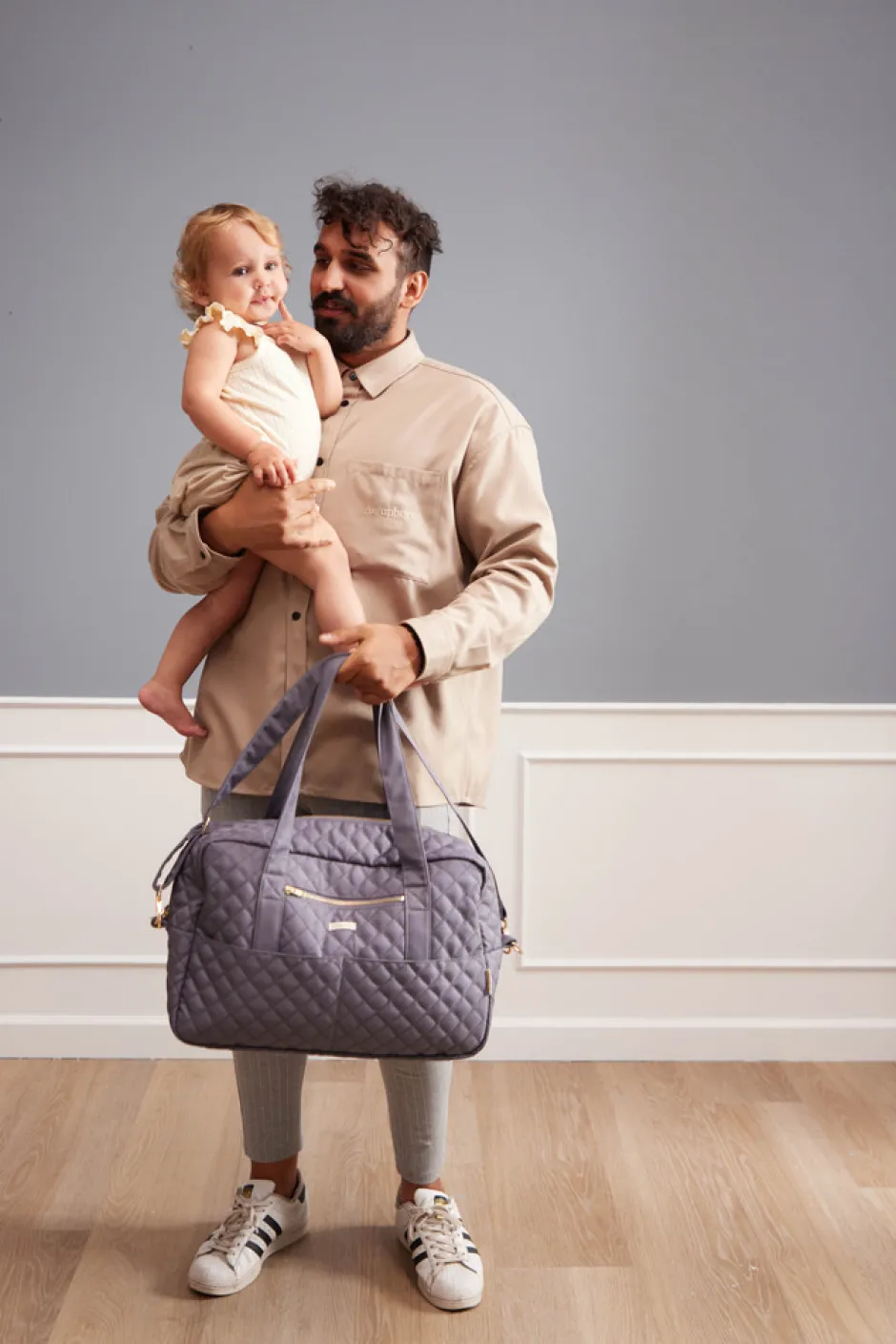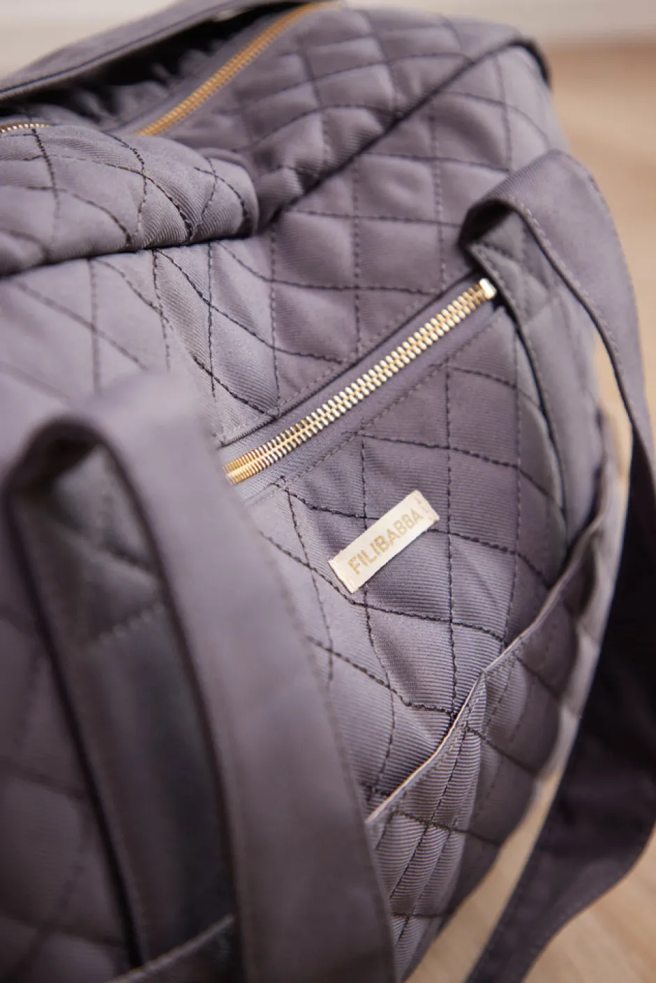 Filibabbas nye parent bag er designet til alle forældre, der skal bruge en større pusletaske eller en smart weekendtaske. Det store rum og de mange praktiske lommer gør det nemt at organisere alle de ting, familien skal have med på farten. Du kan således bruge vores smukke parent bag som en “familietaske” eller som din minimalistiske arbejdstaske, sportstaske eller en rummelig shopper. Tasken er lavet af genanvendt RPET-polyester, som er slidstærkt og nemt at tørre af. Tasken er designet med en coated foring, hvilket gør taskens inderside smuds- og vandafvisende. Den aftagelige skulderstrop justeres nemt og hurtigt, så de voksne familiemedlemmer kan bære tasken på skift. Den fine guldfarvede kvalitets lynlås gør din nye taske både æstetisk, holdbar og praktisk.