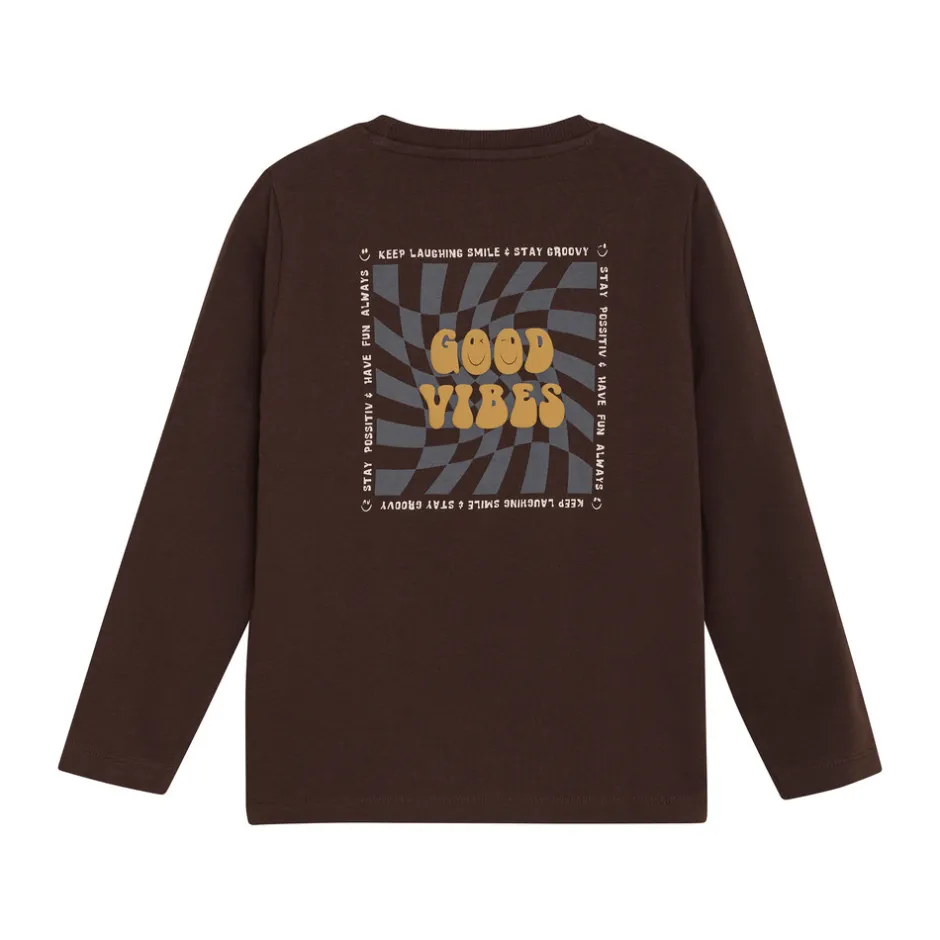Langærmet T-shirt med et iøjnefaldende print på ryggen, rund halsudskæring og en tidssvarende pasform – perfekt til et afslappet og stilfuldt look.