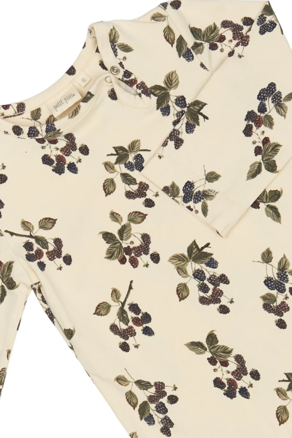 Printede body med akvarelprint fra Petit Piao i økologisk bomuld. Printene er inspireret af naturen og alt omkring den jyske vestkyst. Printene er med en cremefarvet baggrund, så printet er i fokus. I halsåbningens venstre side er der en trykknap som gør det nemt at få den over barnets hoved. I bunden er der tre trykknapper, som gør det let at stifte barnet. Der er 5% elastan i, så barnet har let ved at bevæge sig og lege. Produceret i Indien.