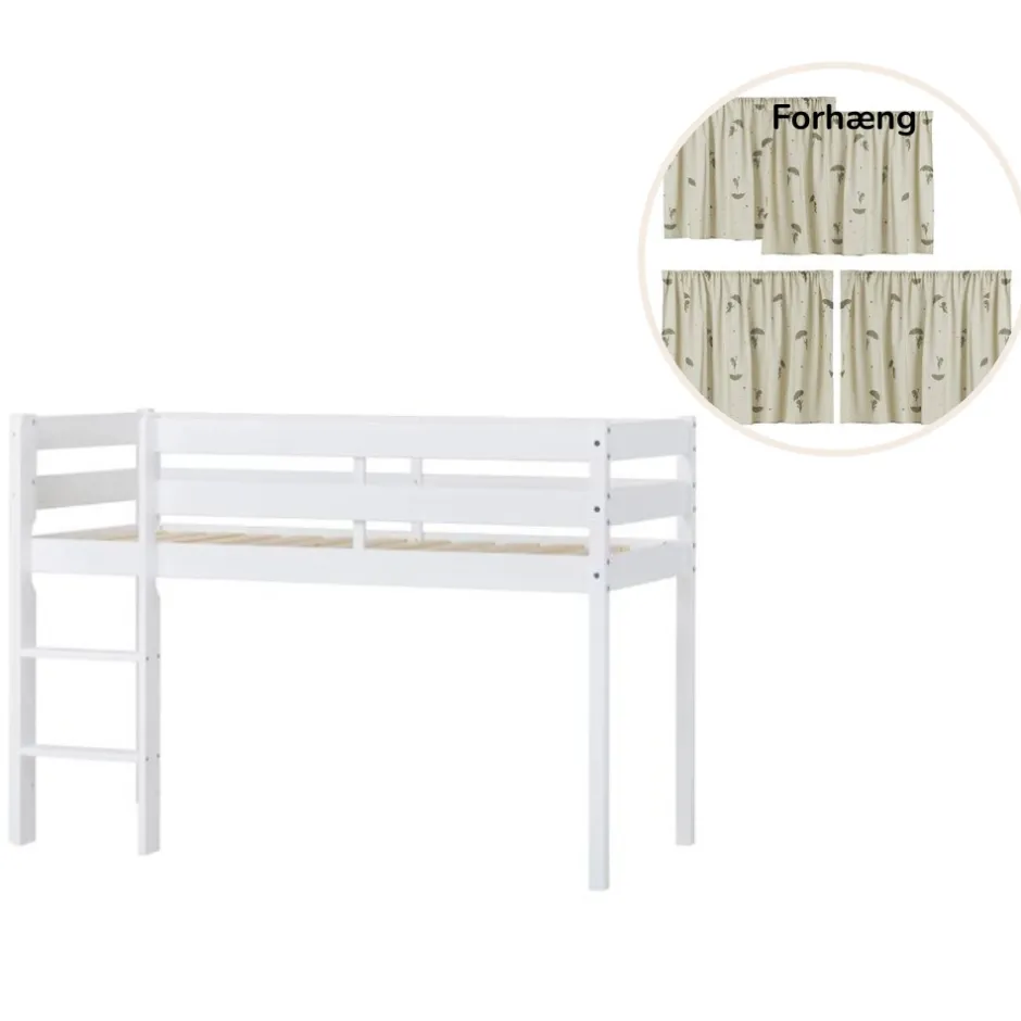Forhænget passer til halvhøje & køjesenge med madrasstørrelse 70×160, 70×190 og 90×200 cm.