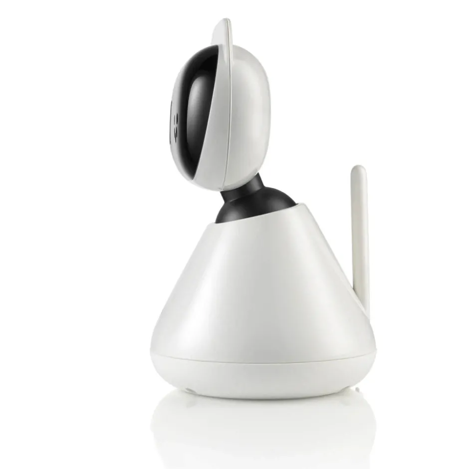Kameraet har en manuelt justerbar vinkel og digital zoom for at give dig et perfekt overblik over dine små. Det er udstyret med infrarødt nattesyn og overvågning af rumtemperaturen for at sikre, at du altid har fuld kontrol. Derudover tilbyder det tovejskommunikation og en højsensitiv mikrofon, som gør det muligt at tale med og berolige dit barn, selv når du ikke er i samme rum. Kameraet kan også afspille beroligende vuggeviser.